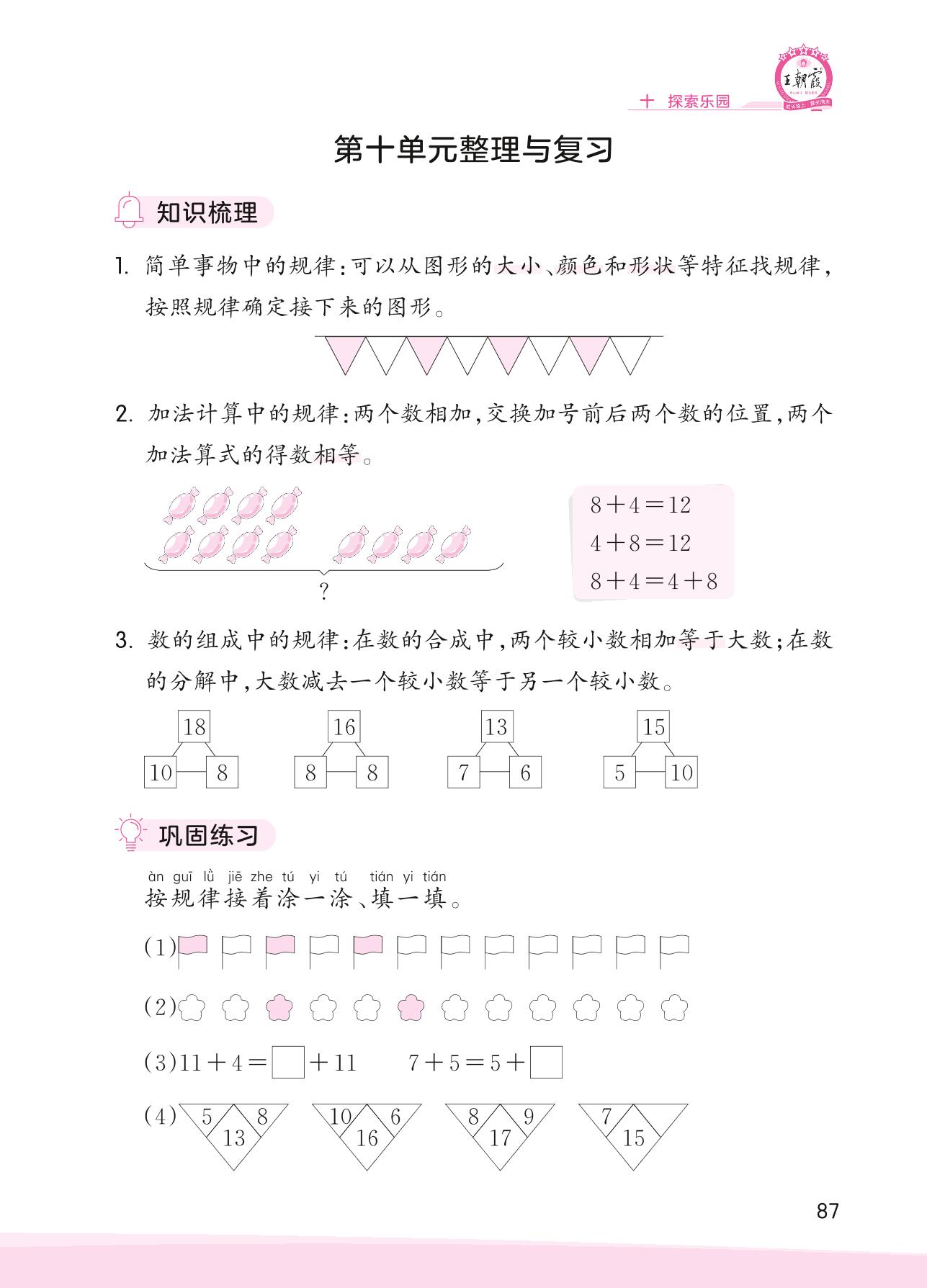2023上册一年级数学冀教版 第十单元整理与复习