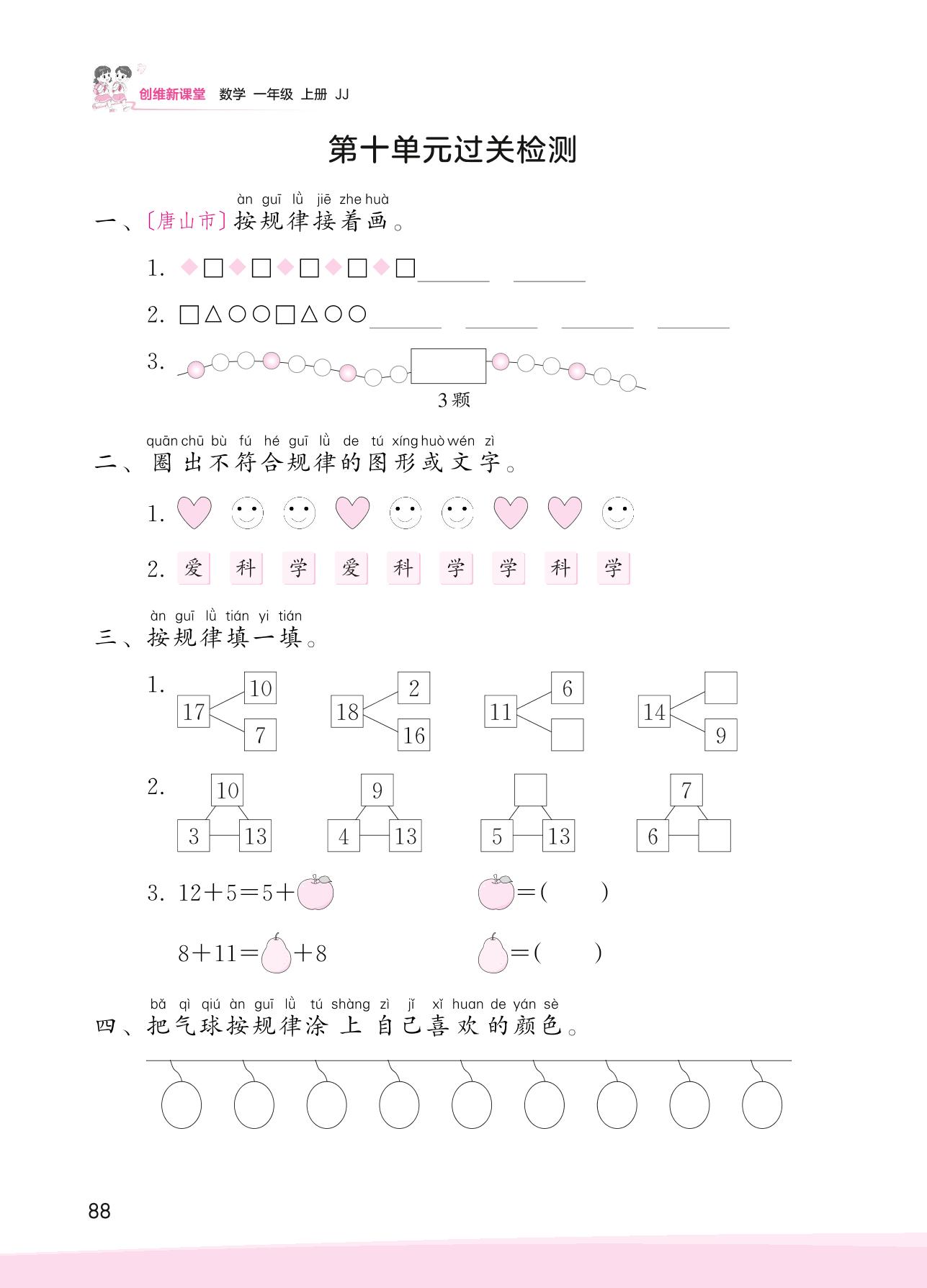 一年级数学冀教版上册单元卷