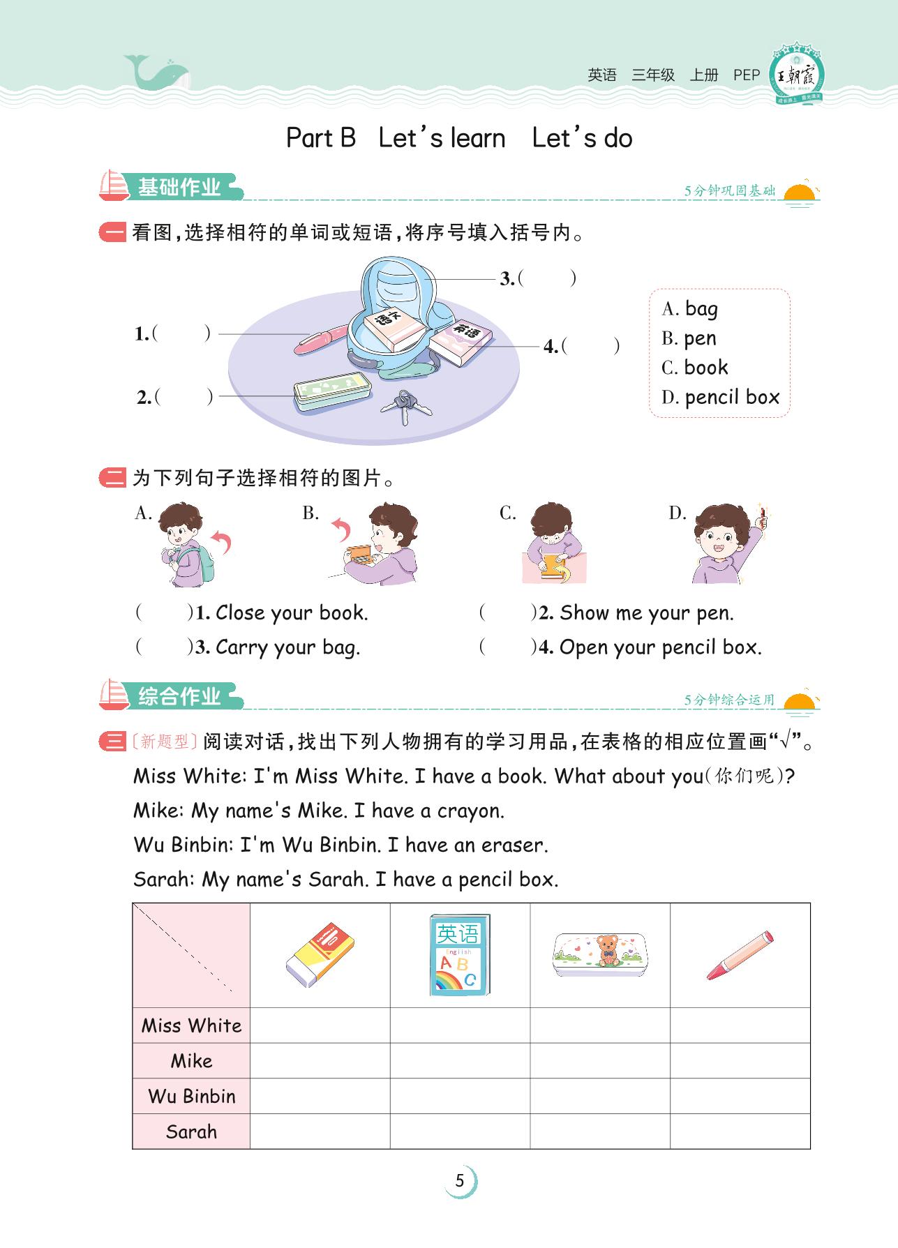 2023上册三年级英语人教PEP版 Unit 1—Part B Let’s learn Let’s do