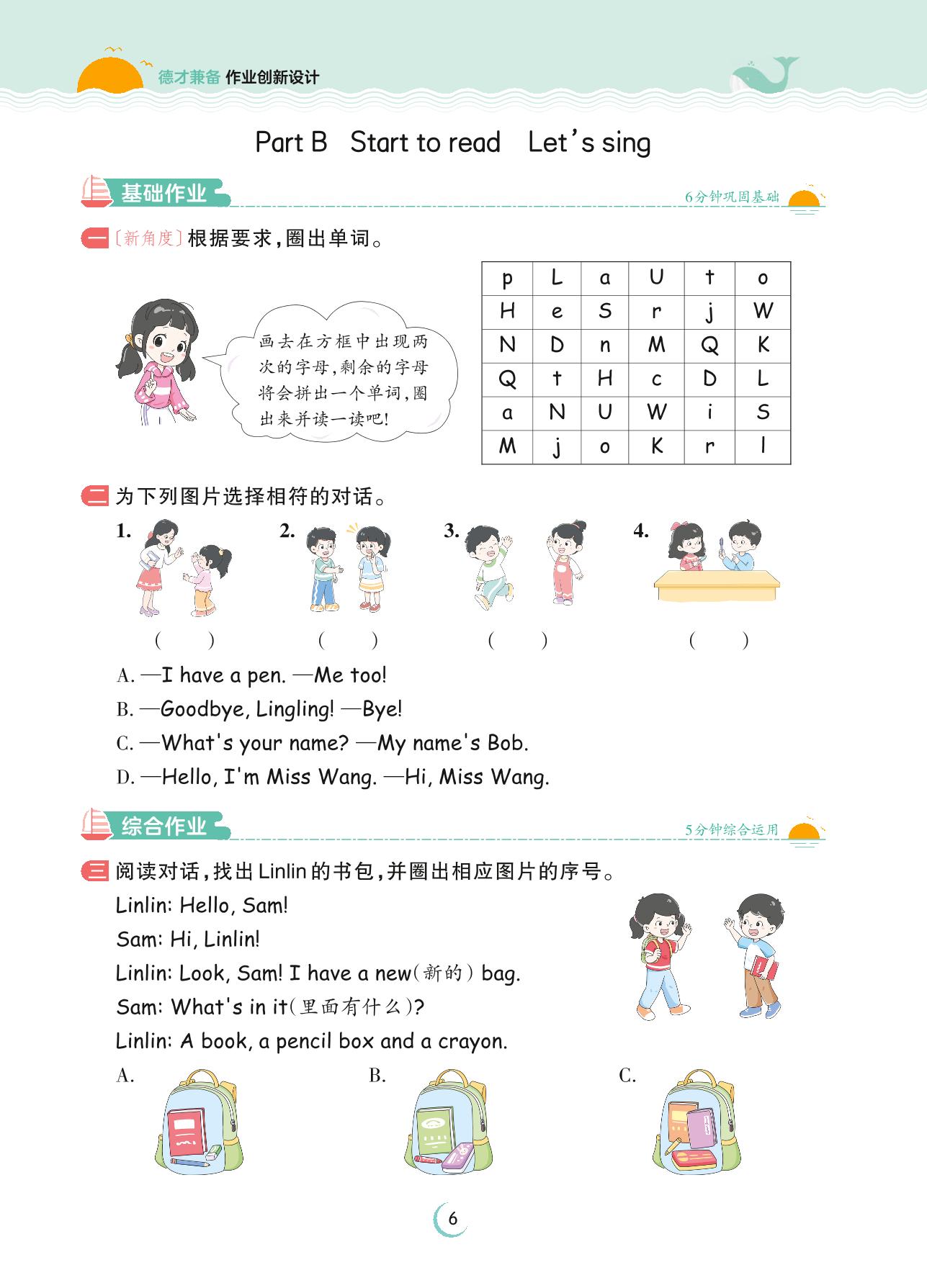 2023上册三年级英语人教PEP版 Unit 1—Part B Start to read Let’s sing