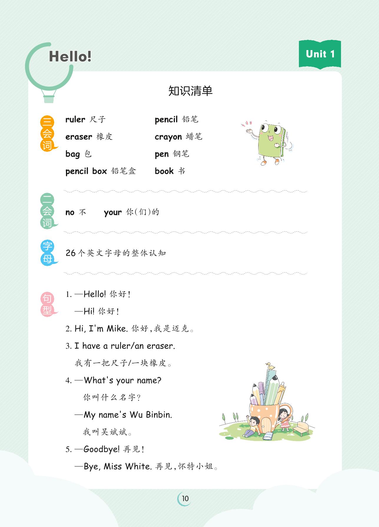 2023上册三年级英语人教PEP版 Unit 1 知识清单