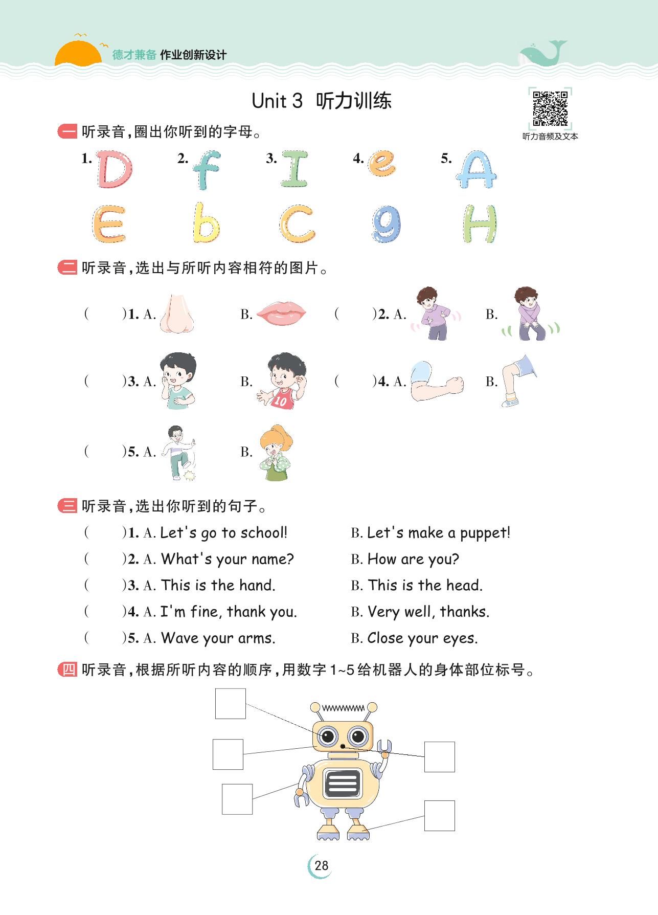 2023上册三年级英语人教PEP版 Unit 3 听力训练
