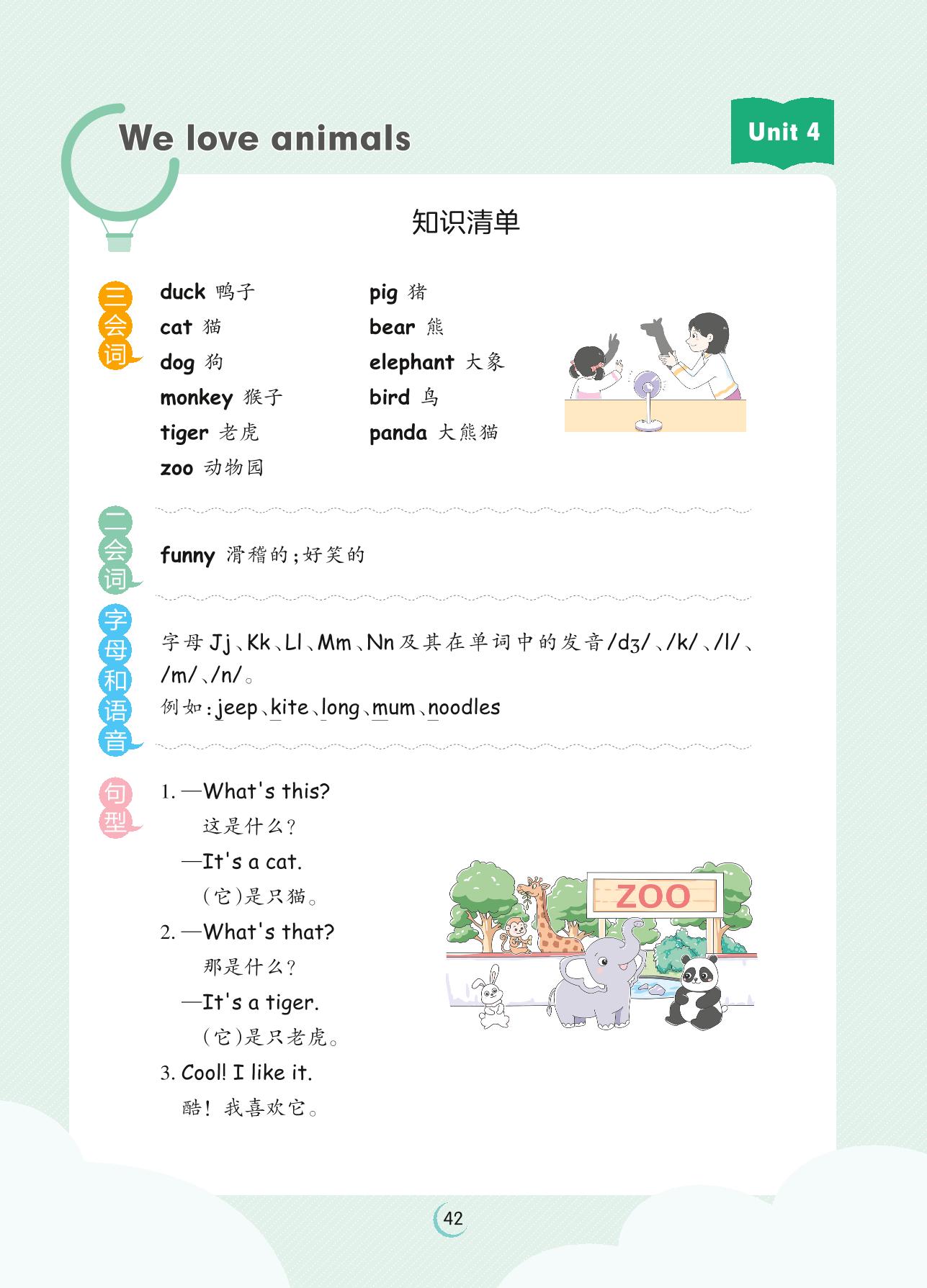 2023上册三年级英语人教PEP版 Unit 4 知识清单