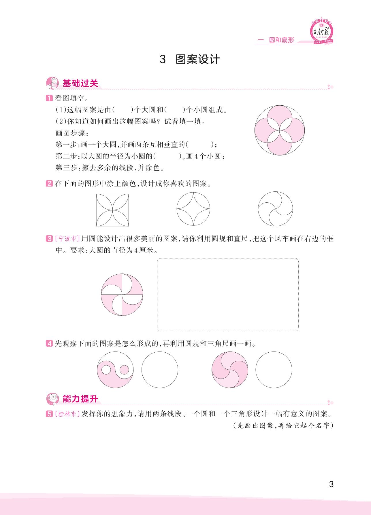 2023上册六年级数学冀教版 一 圆和扇形——3 图案设计