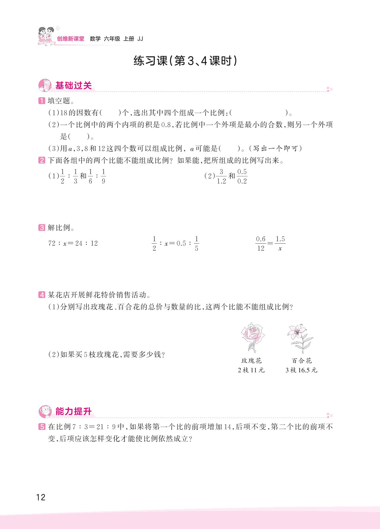 2023上册六年级数学冀教版 二 比和比例——练习课(第3、4课时)