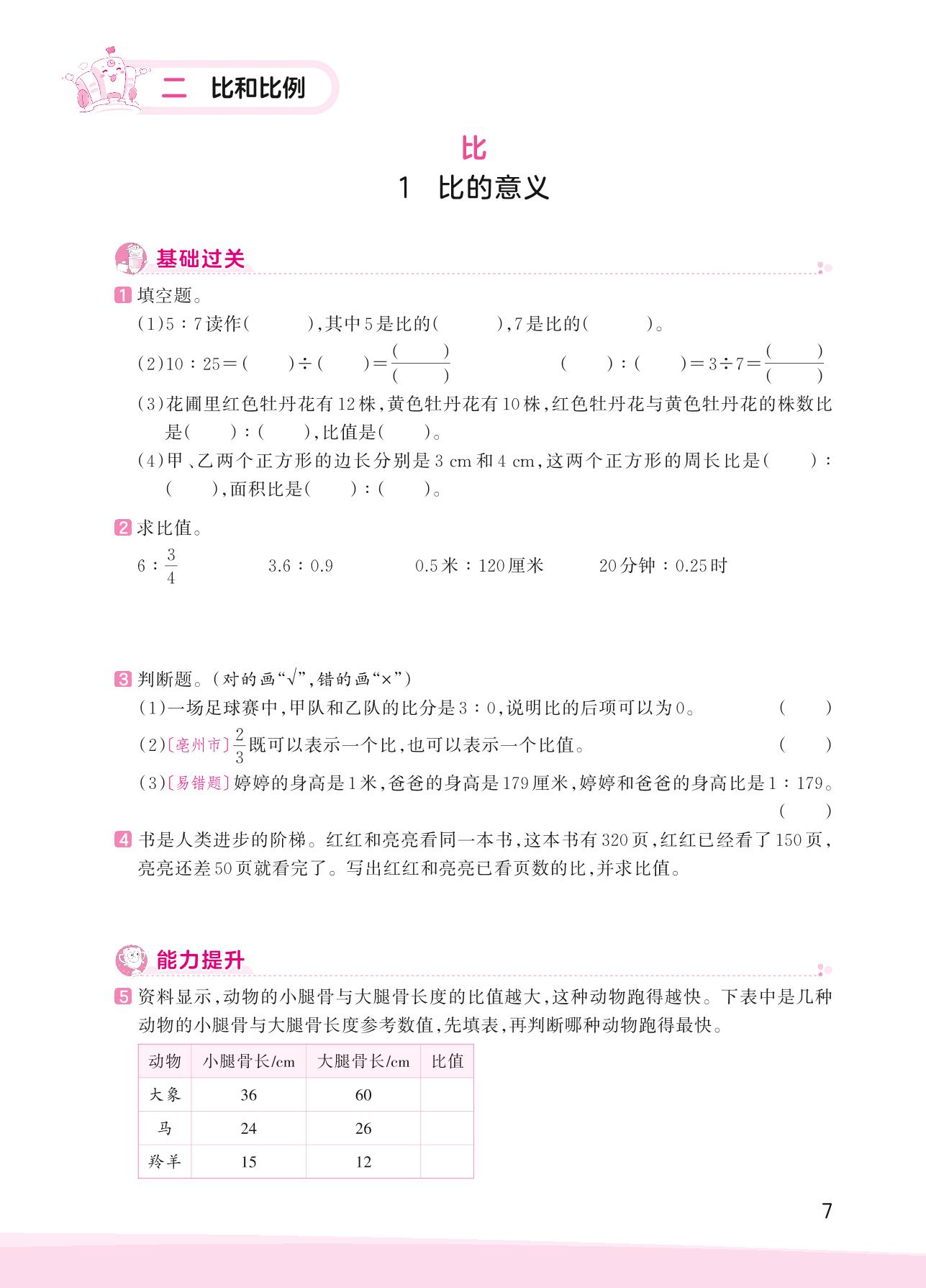 2023上册六年级数学冀教版 二 比和比例——1 比的意义