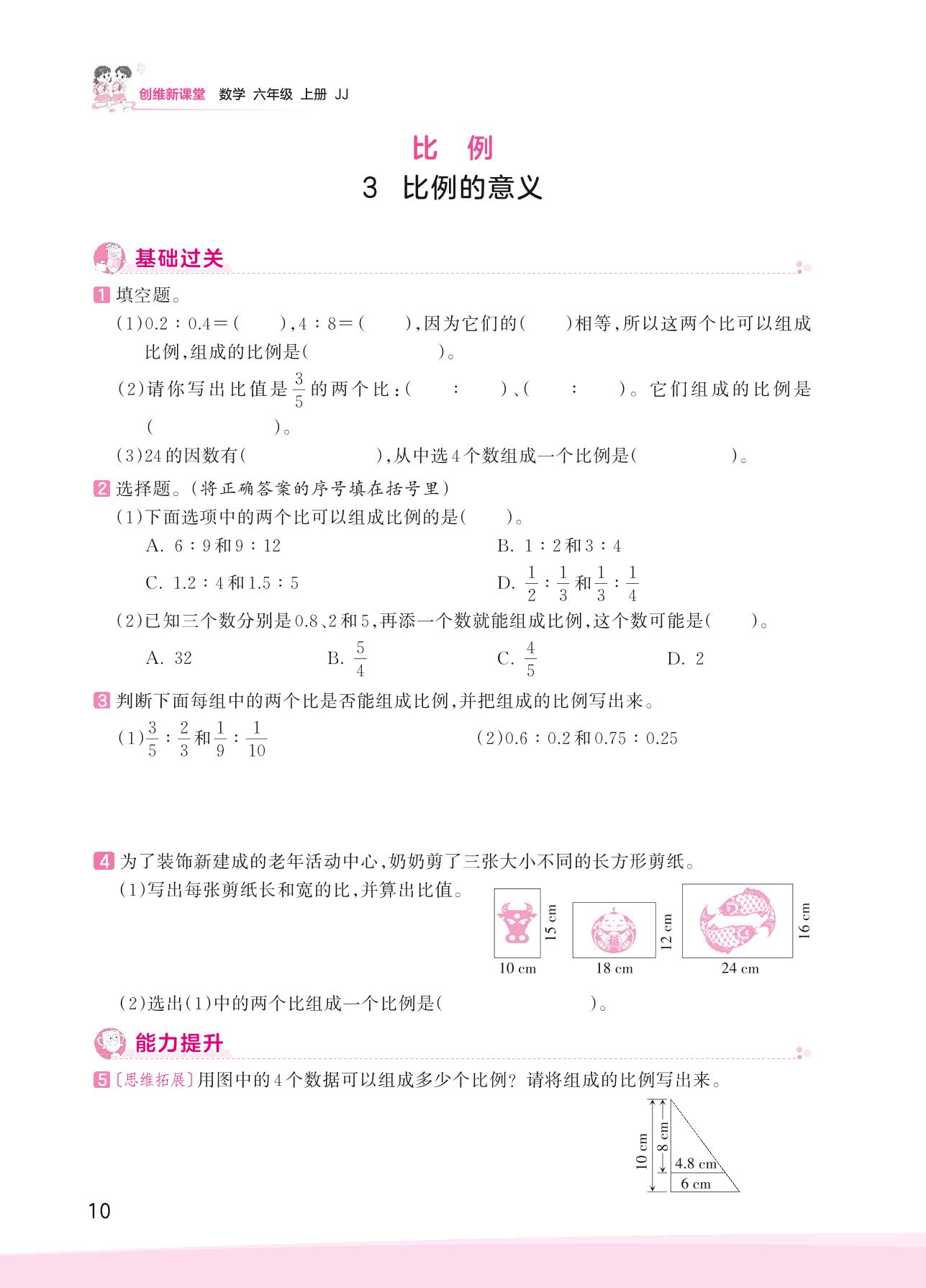 2023上册六年级数学冀教版 二 比和比例——3 比例的意义