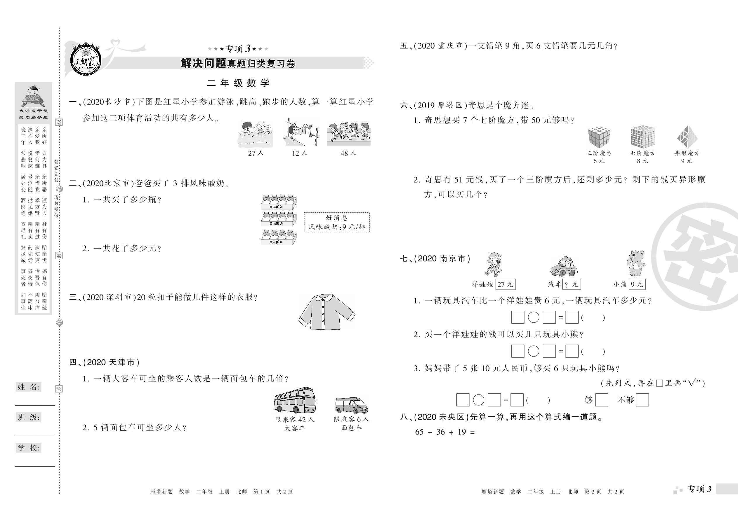 王朝霞期末专项卷——解决问题真题归类复习新颖题速递:生活与数学二年级上册数学(北师版)_R21080384152【0】