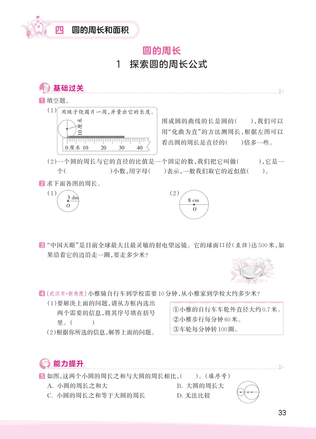 2023上册六年级数学冀教版 四 圆的周长和面积——1 探索圆的周长公式