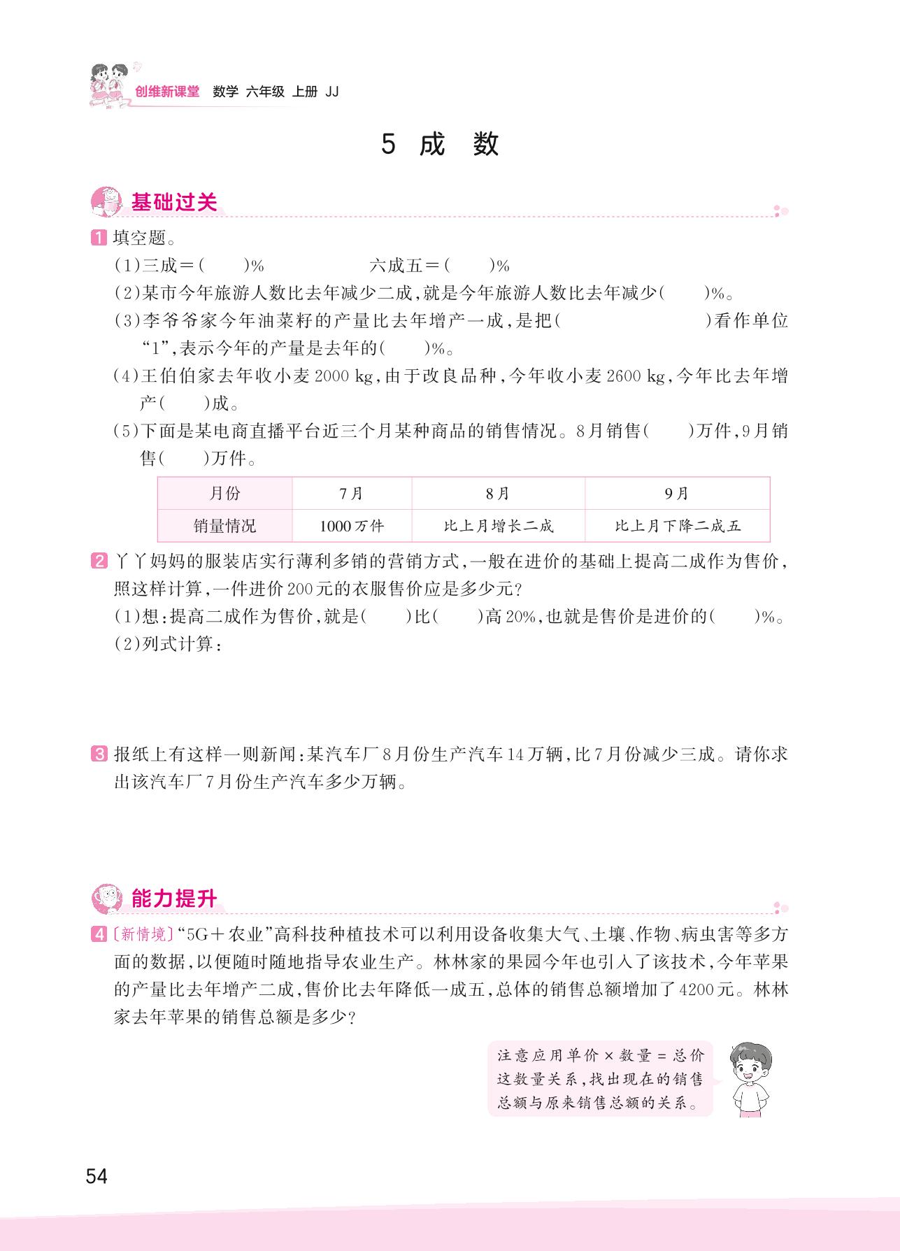 2023上册六年级数学冀教版 五 百分数的应用——5 成数