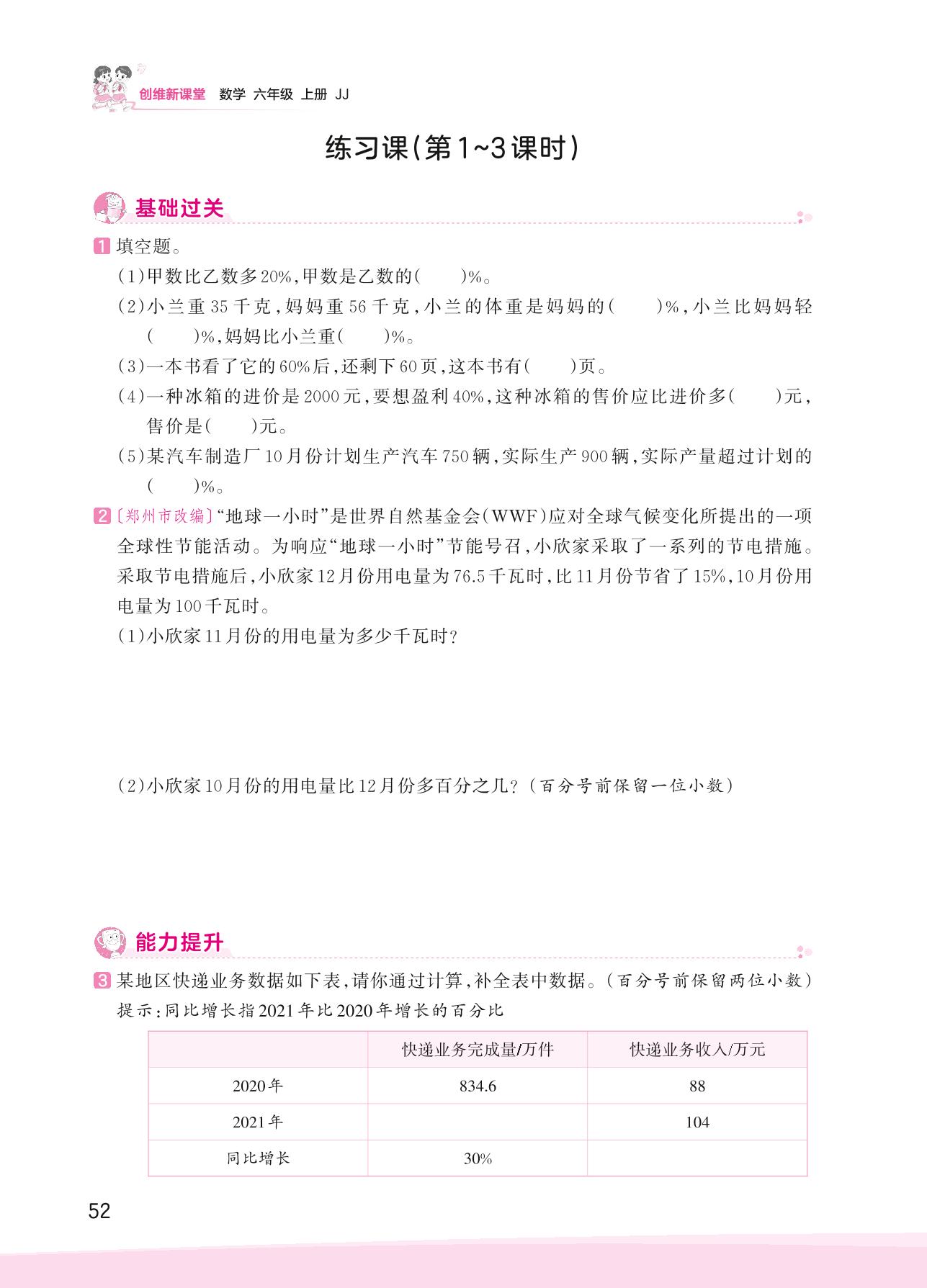 2023上册六年级数学冀教版 五 百分数的应用——练习课(第1~3课时)