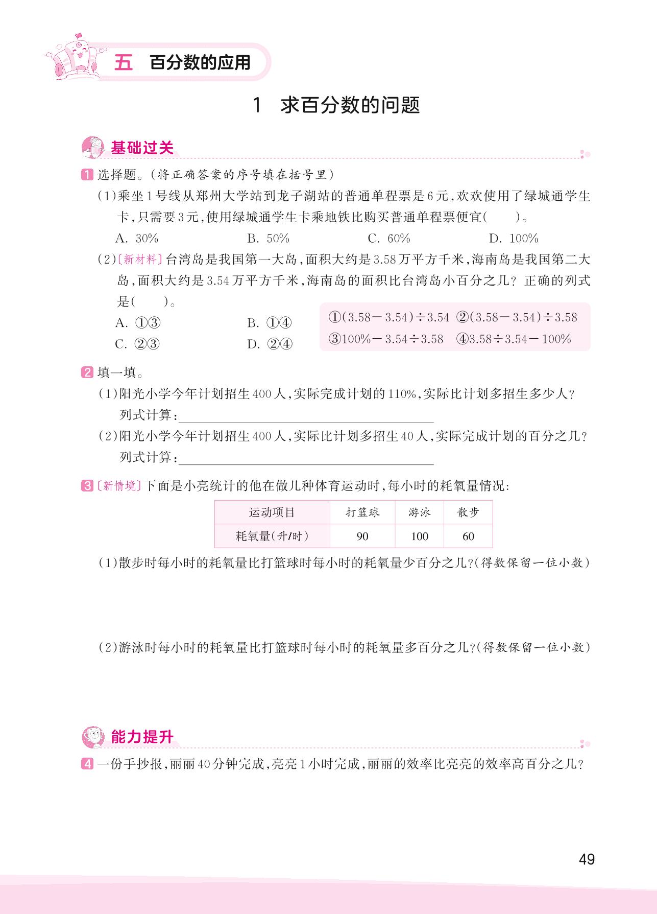 2023上册六年级数学冀教版 五 百分数的应用——1 求百分数的问题