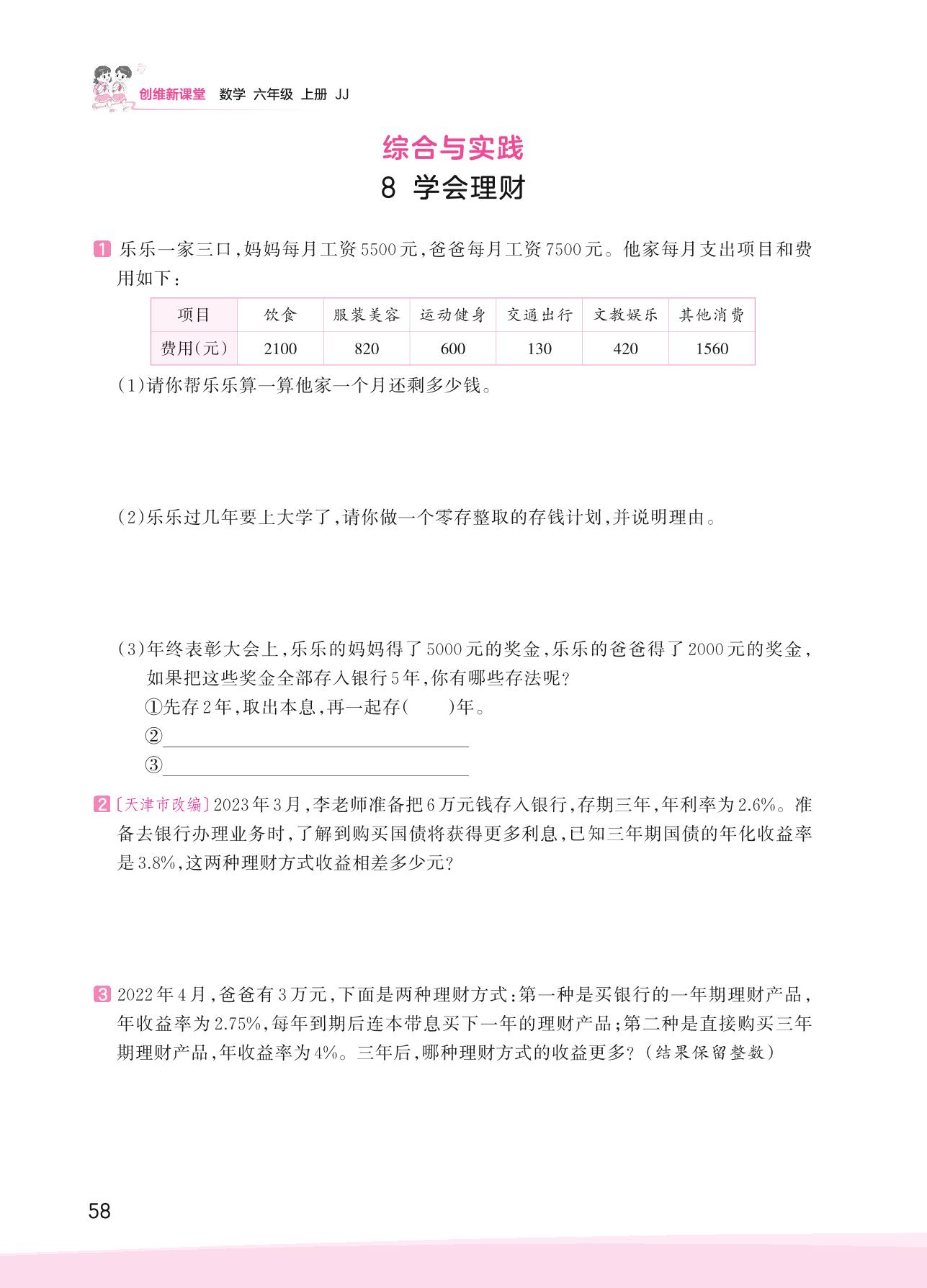 2023上册六年级数学冀教版 五 百分数的应用——8 学会理财