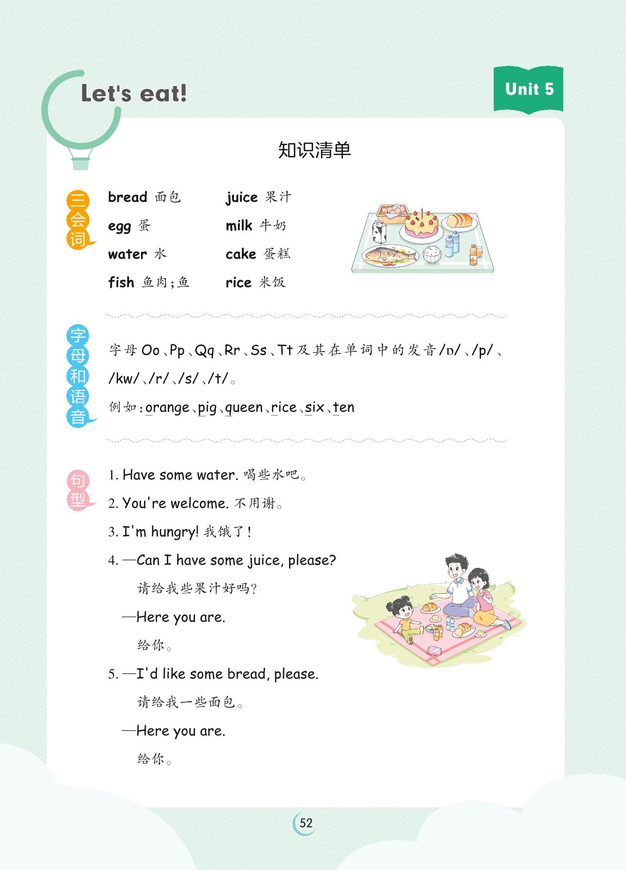 2023上册三年级英语人教PEP版 Unit 5 知识清单