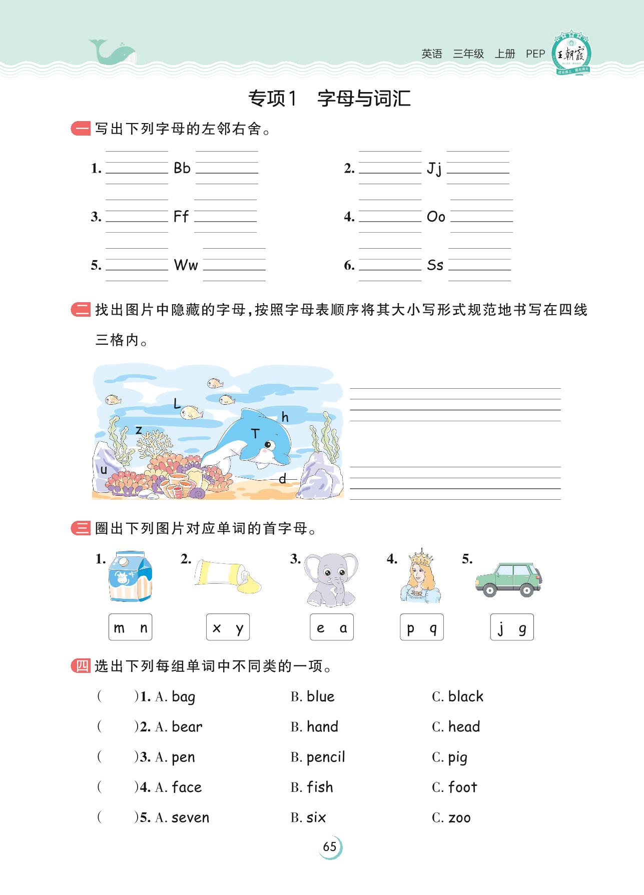 2023上册三年级英语人教PEP版 专项1 字母与词汇