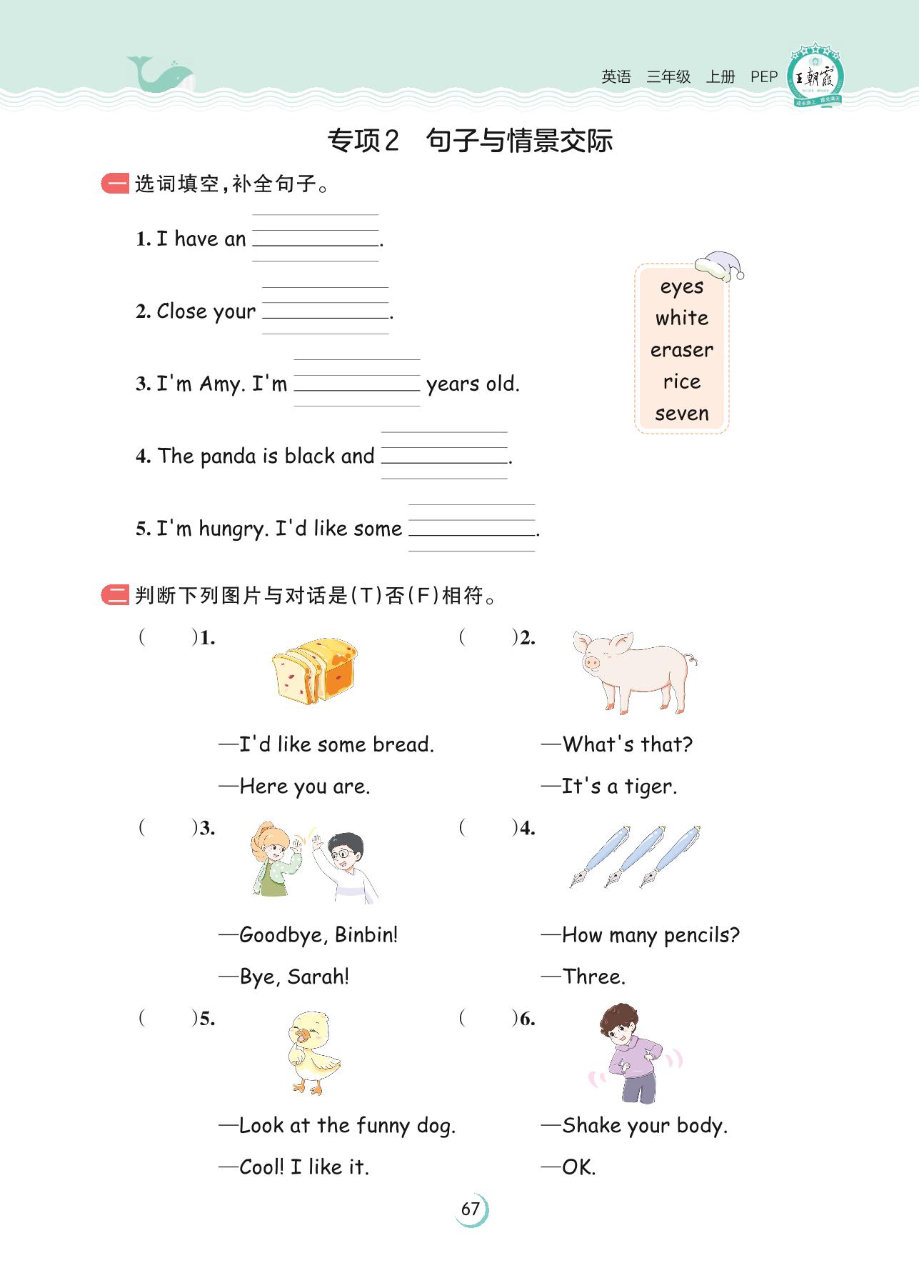 2023上册三年级英语人教PEP版 专项2 句子与情景交际