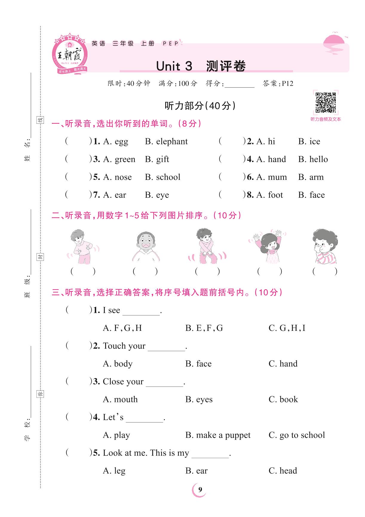 2023上册三年级英语人教PEP版 Unit 3 测评卷