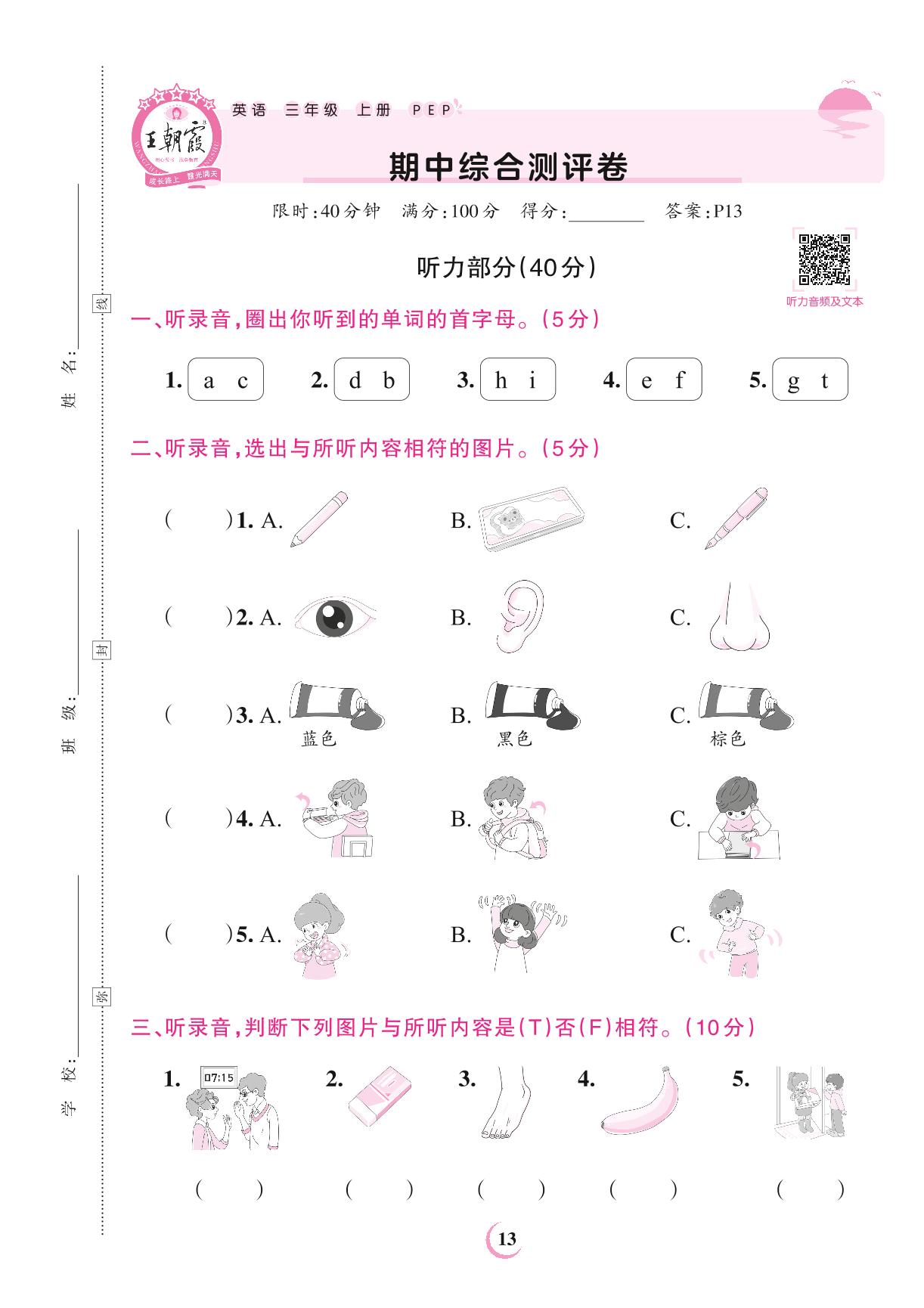 2023上册三年级英语人教PEP版 期中综合测评卷
