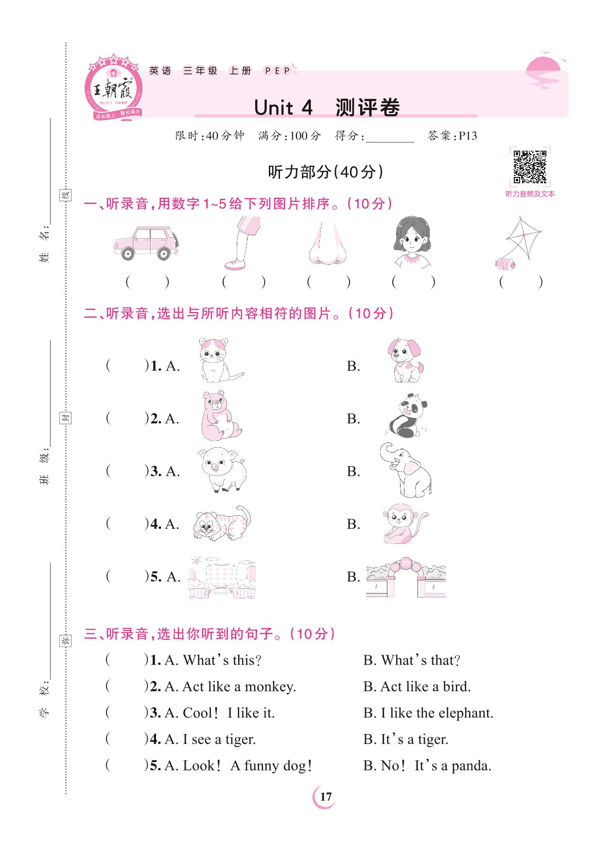 2023上册三年级英语人教PEP版 Unit 4 测评卷
