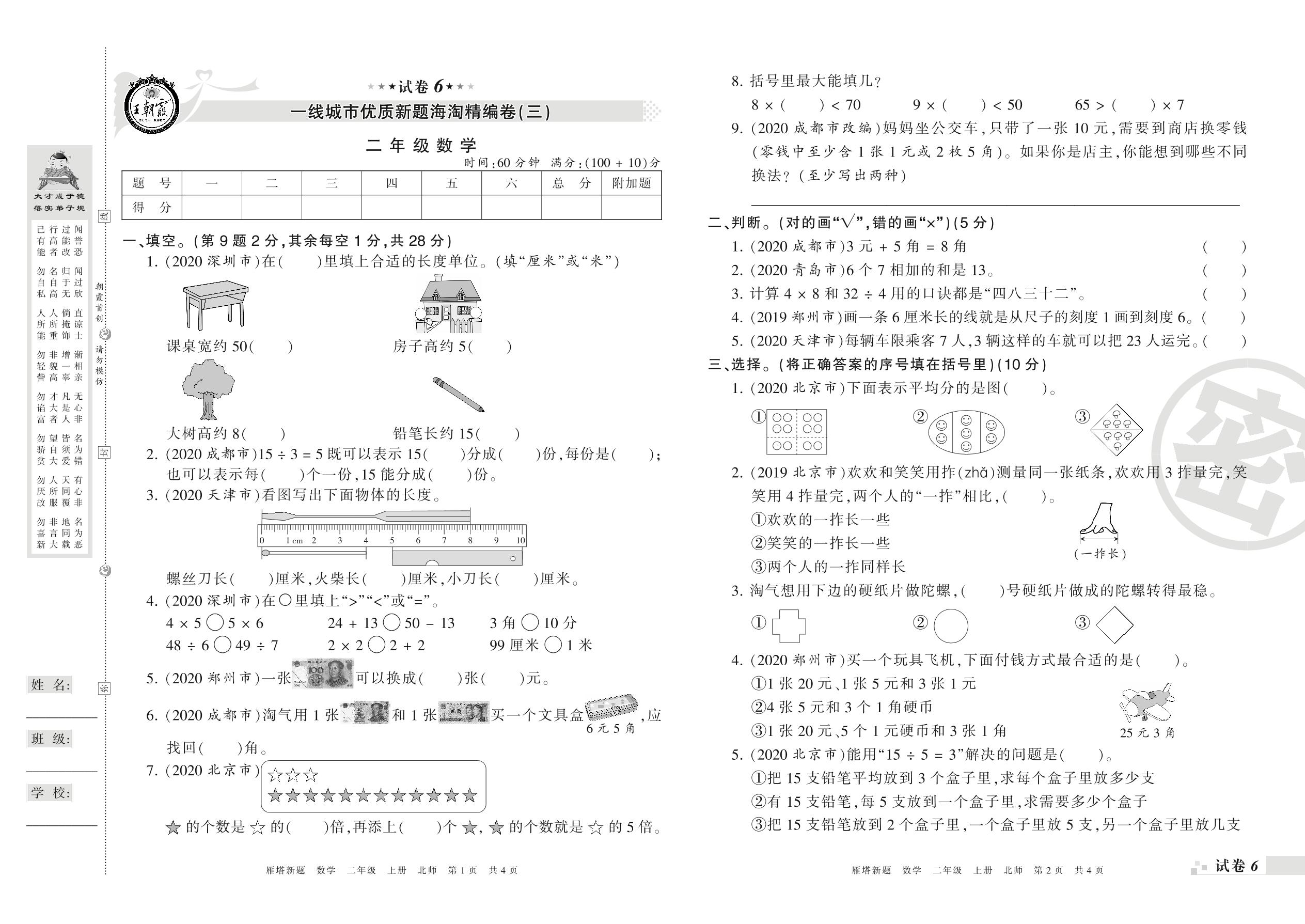王朝霞海淘期末精编卷二年级上册数学(北师版)【6】