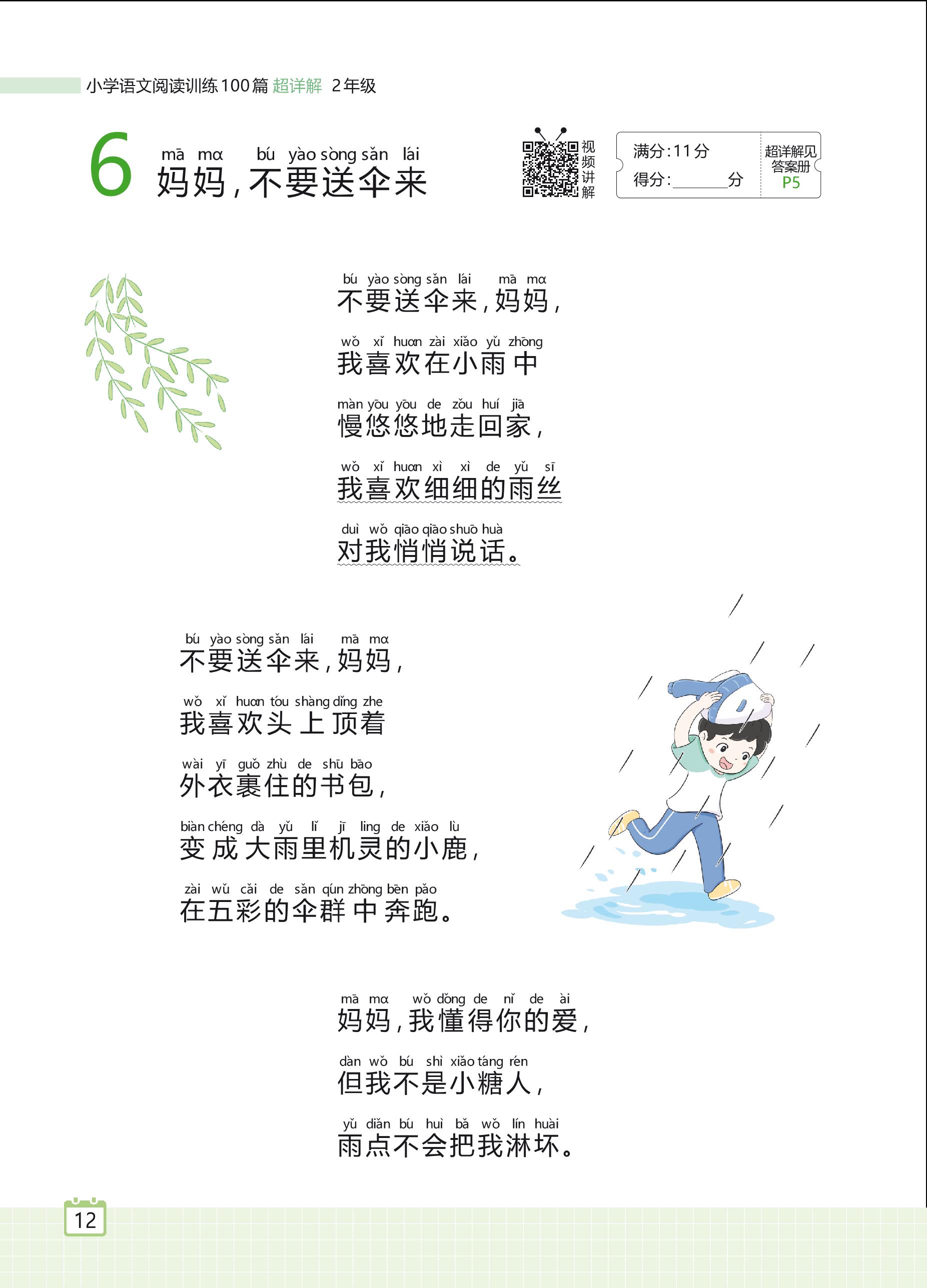 2024全一册二年级语文人教版 专题一 儿童童谣 6 妈妈,不要送伞来