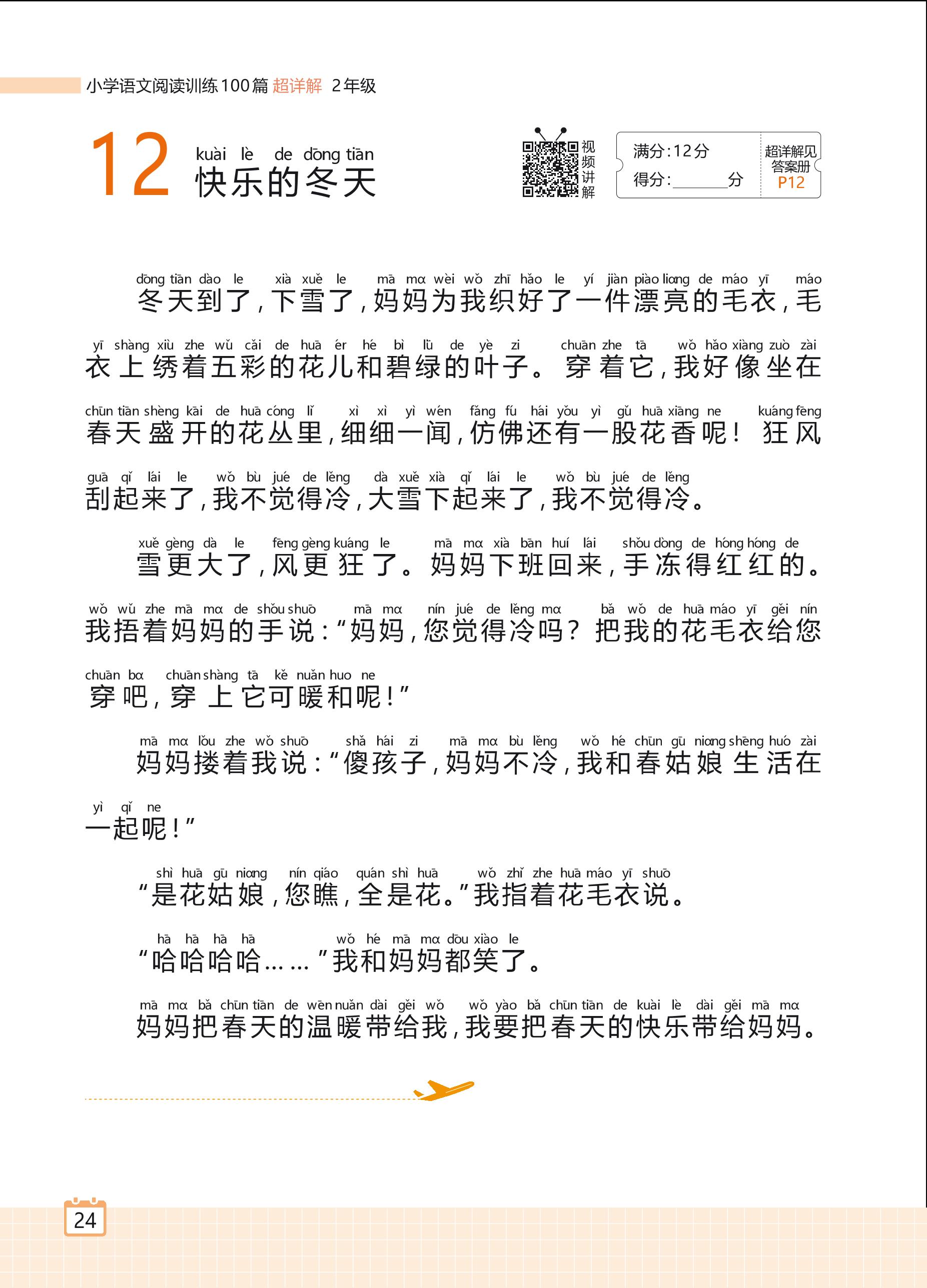 2024全一册二年级语文人教版 专题二 写人记事 12 快乐的冬天