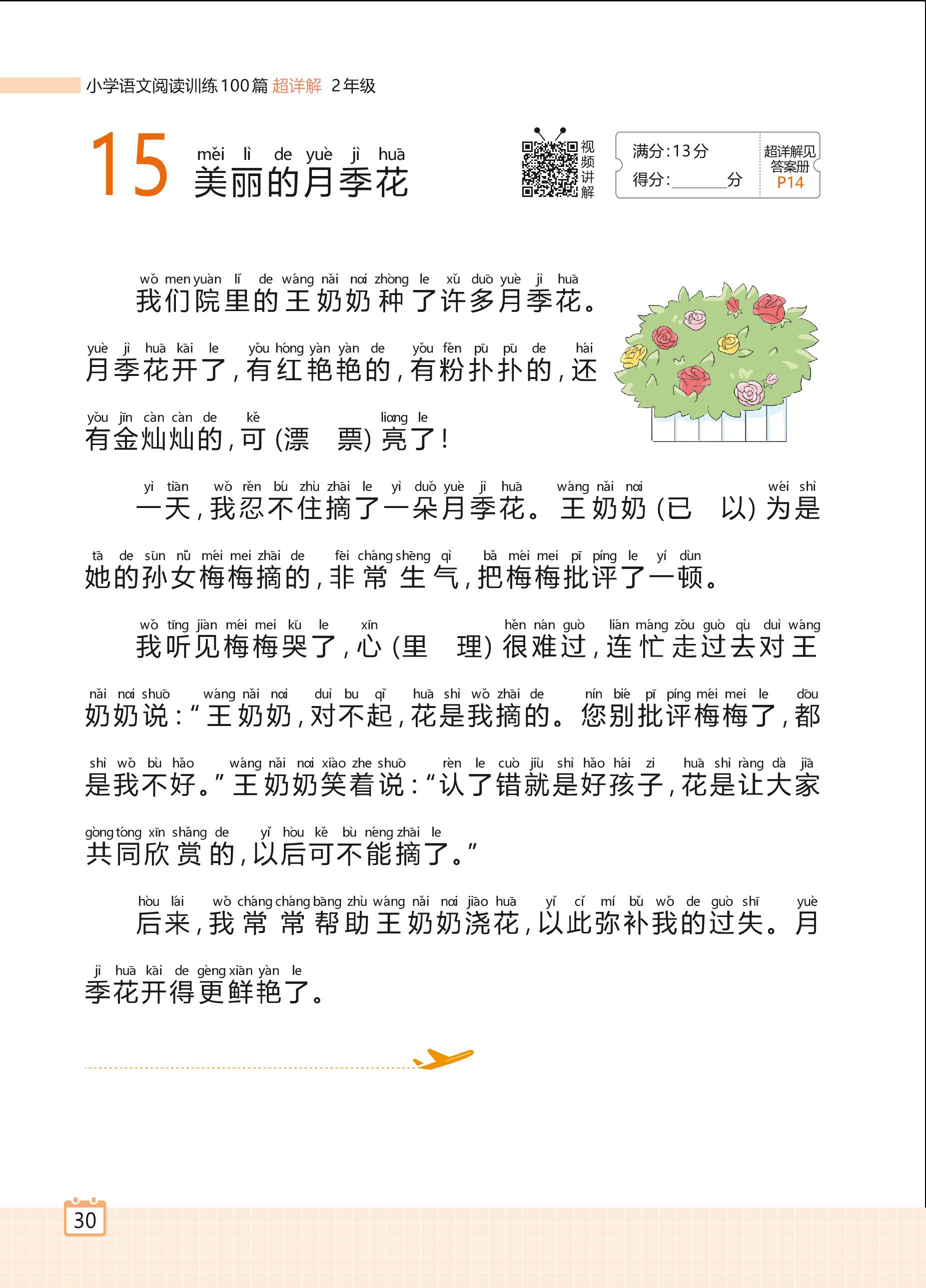 2024全一册二年级语文人教版 专题二 写人记事 15 美丽的月季花