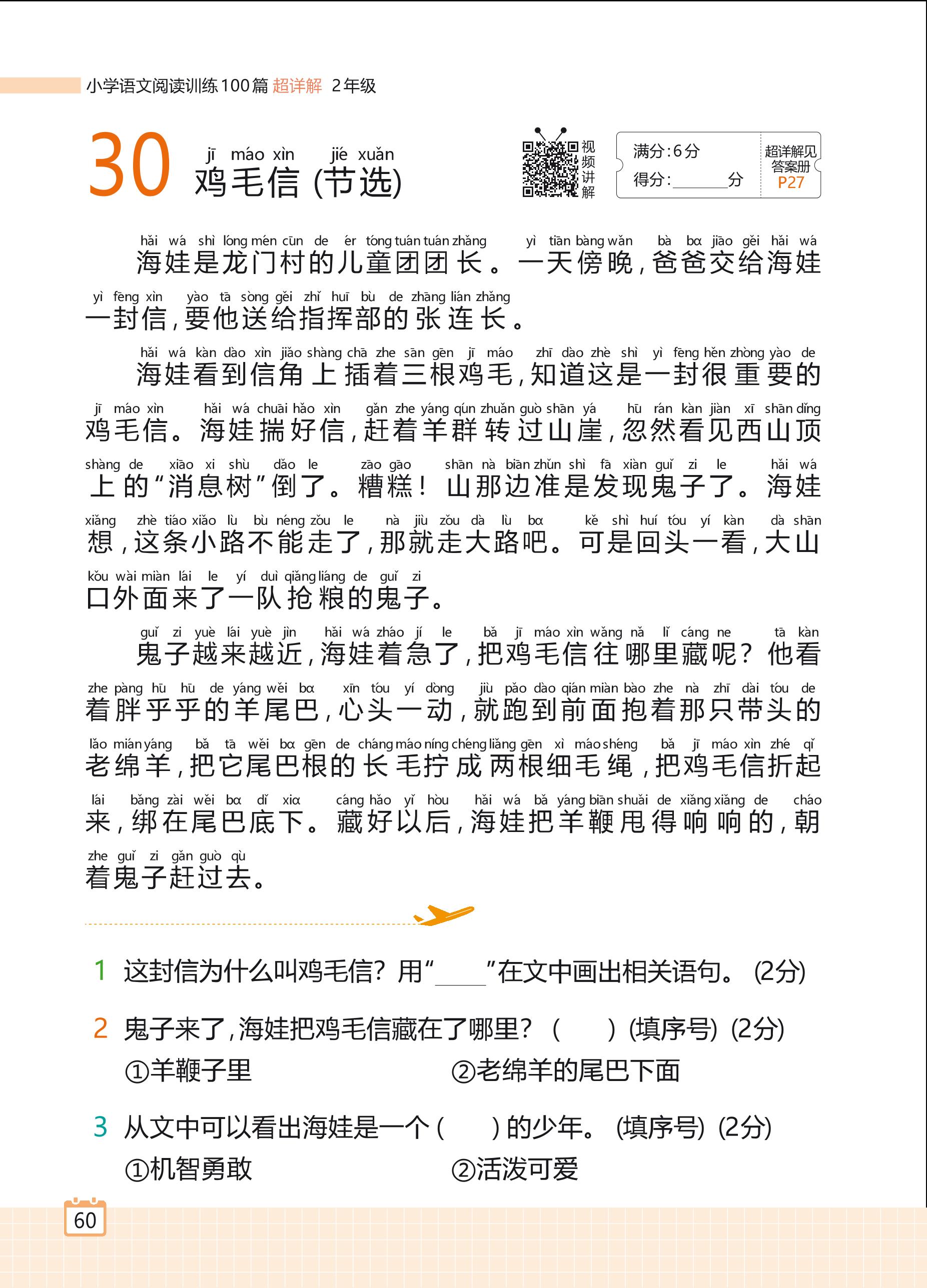 2024全一册二年级语文人教版 专题二 写人记事 30 鸡毛信(节选)