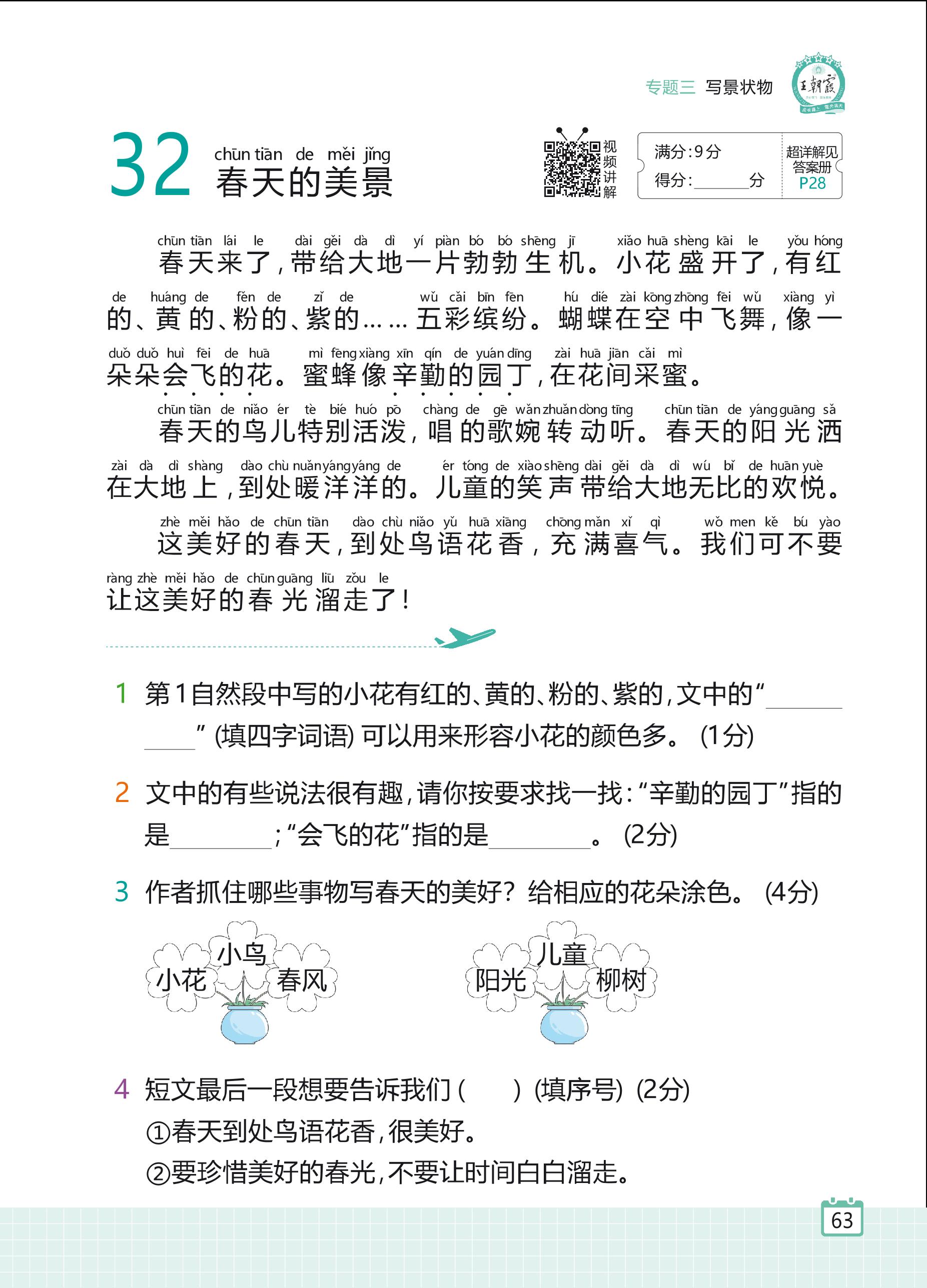 2024全一册二年级语文人教版 专题三 写景状物 32 春天的美景