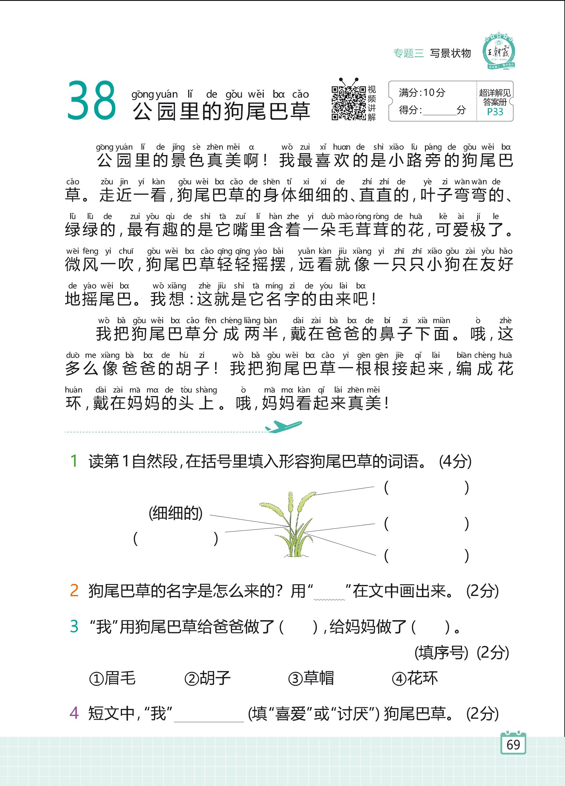 2024全一册二年级语文人教版 专题三 写景状物 38 公园里的狗尾巴草