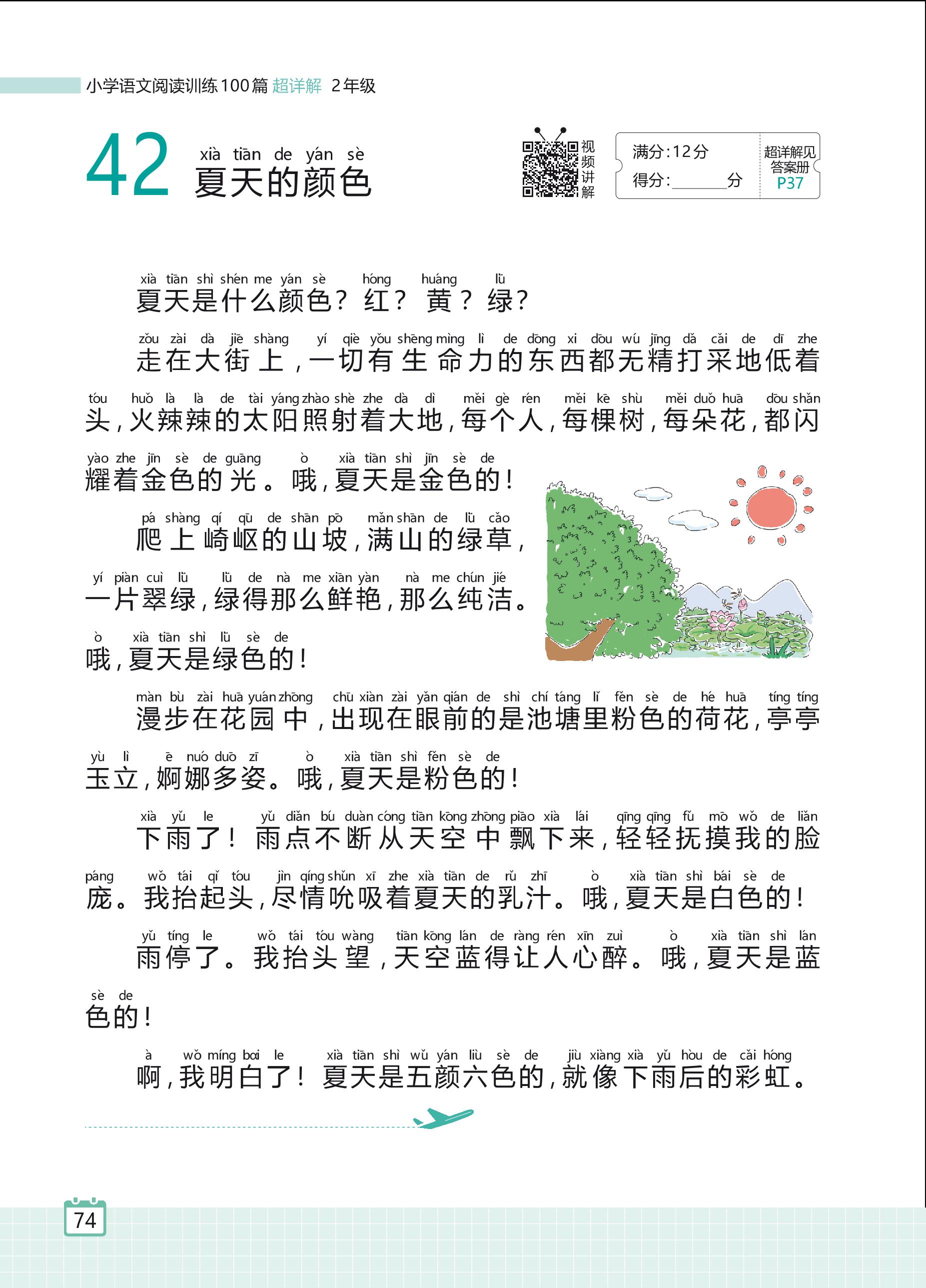 2024全一册二年级语文人教版 专题三 写景状物 42 夏天的颜色