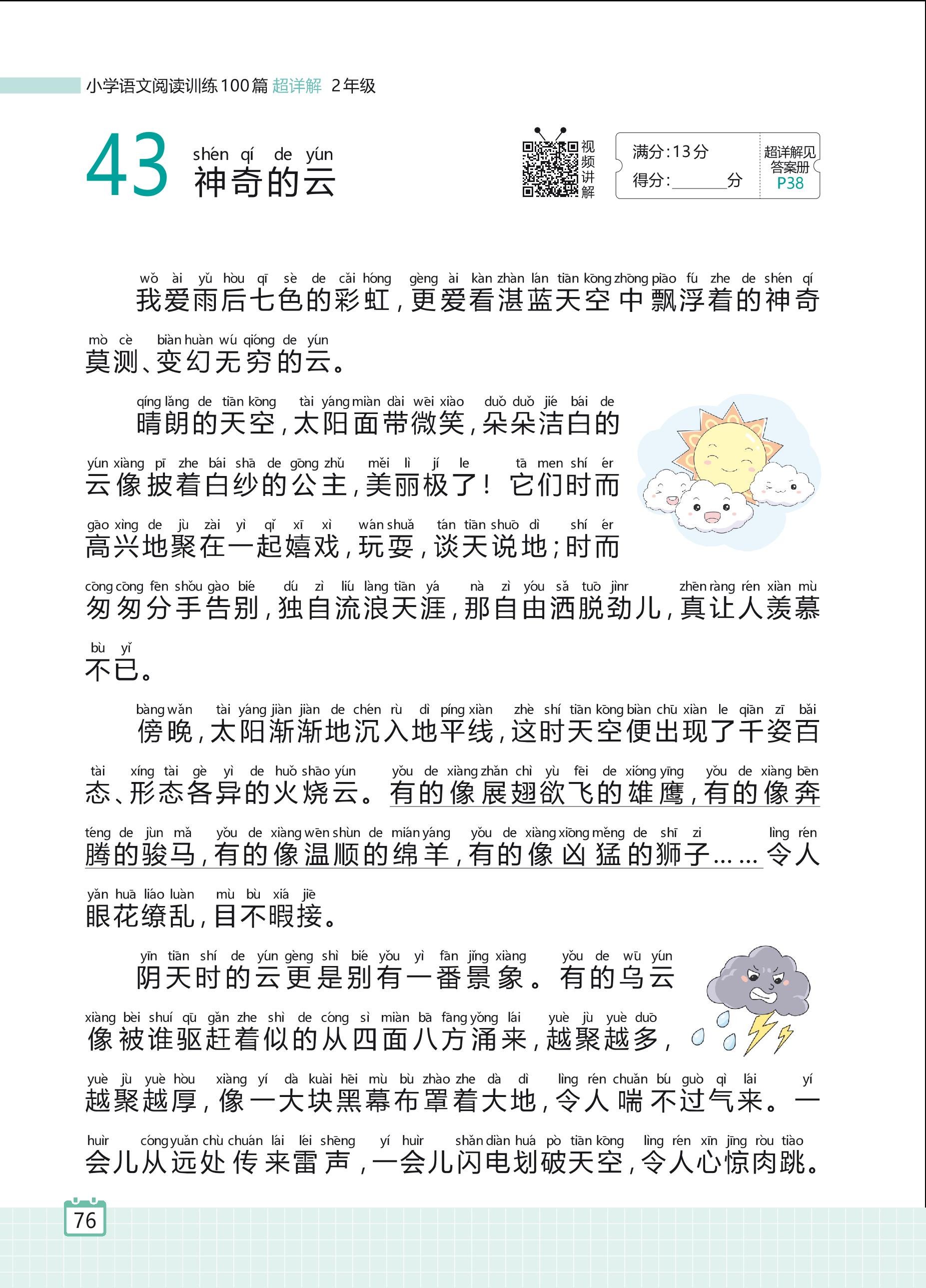 2024全一册二年级语文人教版 专题三 写景状物 43 神奇的云