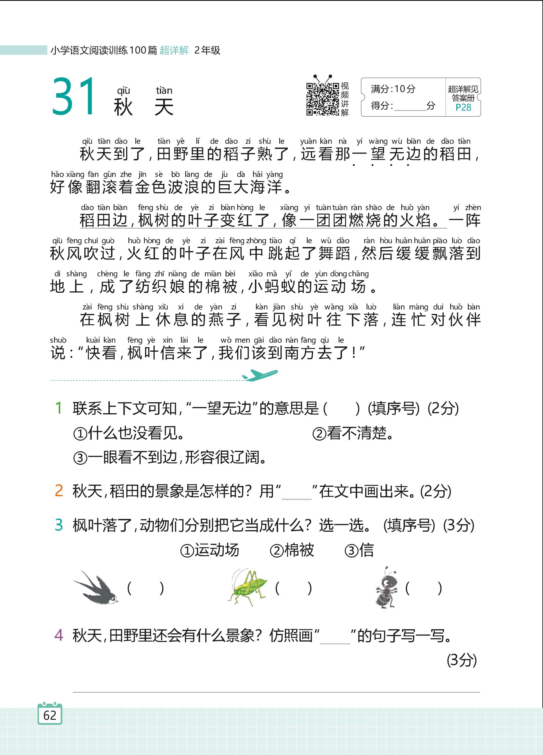 2024全一册二年级语文人教版 专题三 写景状物 31 秋天