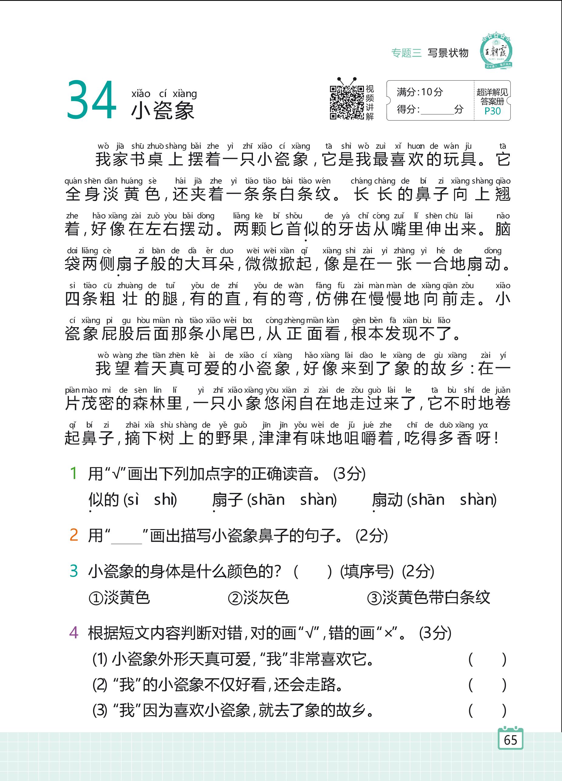 2024全一册二年级语文人教版 专题三 写景状物 34 小瓷象