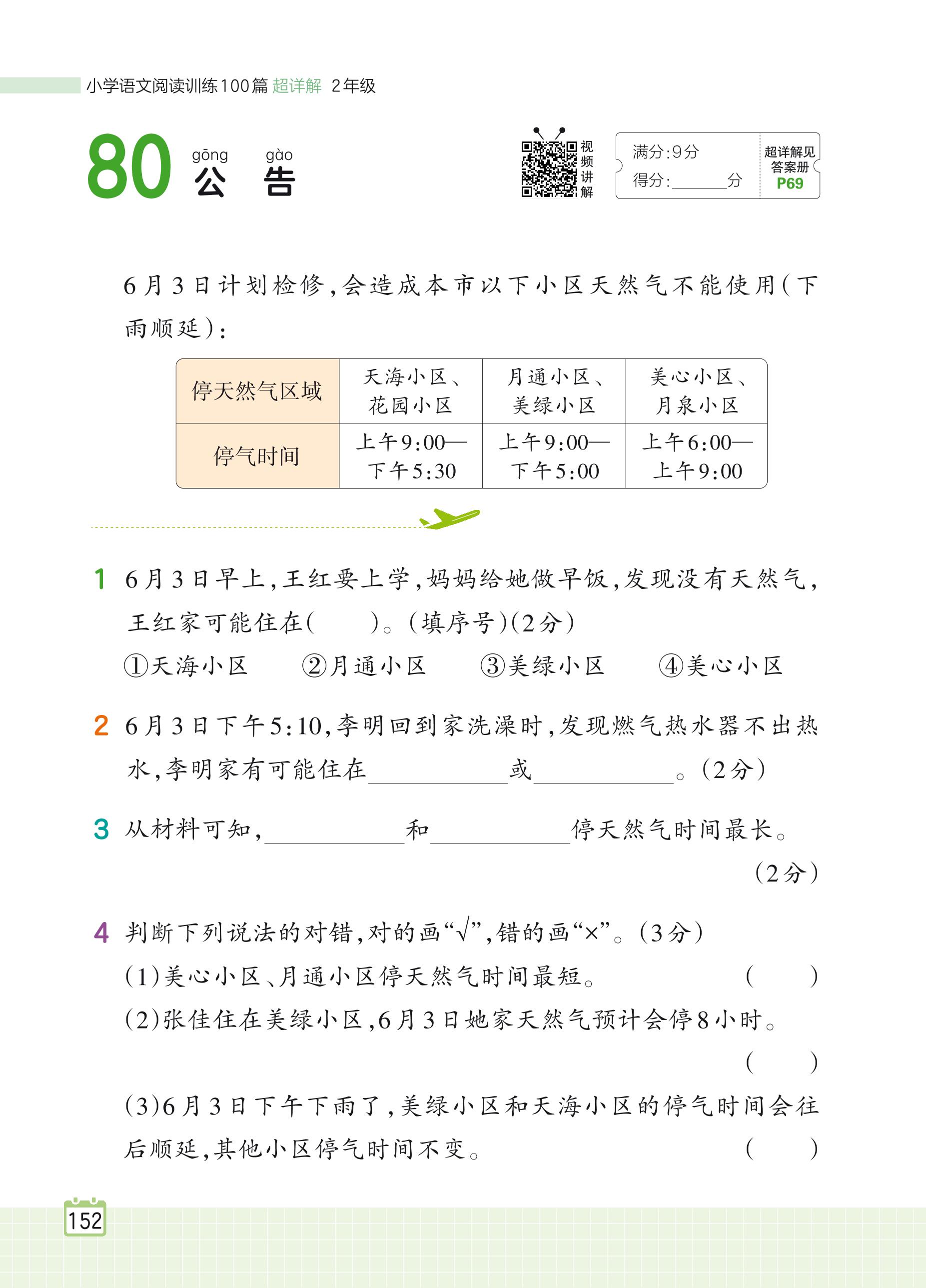 2024全一册二年级语文人教版 专题六 非连续性文本 80 公告