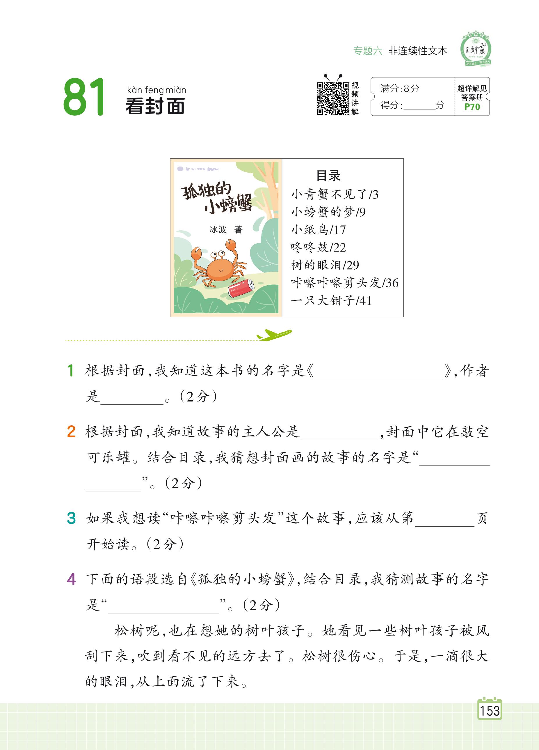 2024全一册二年级语文人教版 专题六 非连续性文本 81 看封面