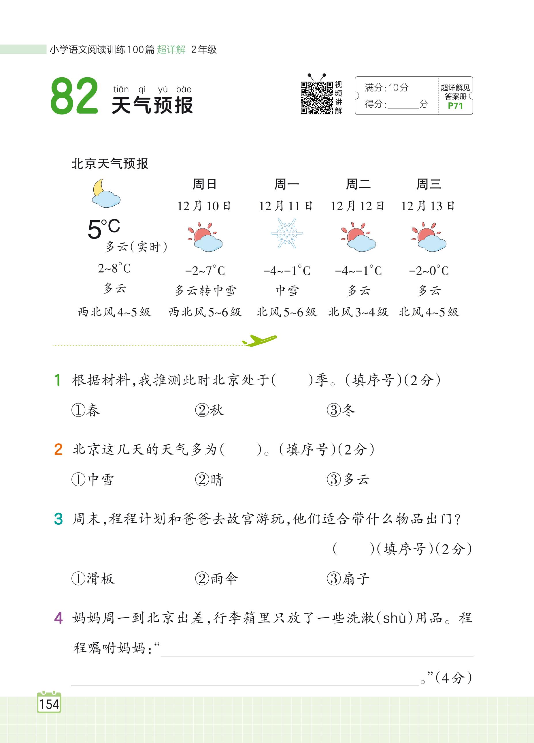 2024全一册二年级语文人教版 专题六 非连续性文本 82 天气预报