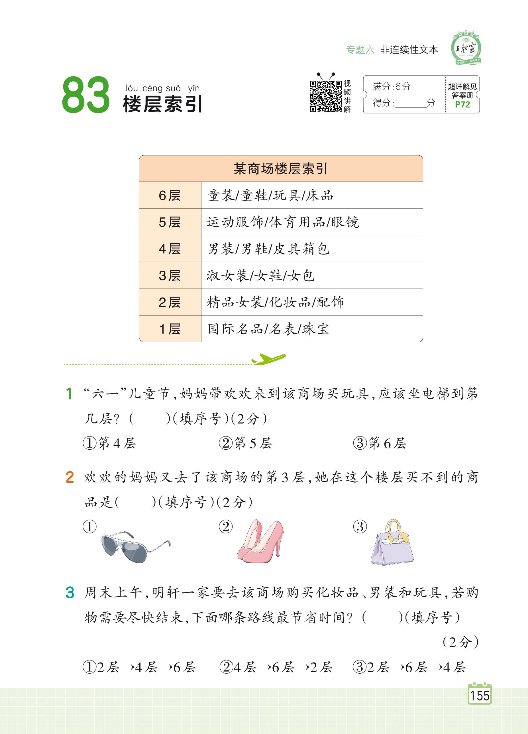 2024全一册二年级语文人教版 专题六 非连续性文本 83 楼层索引