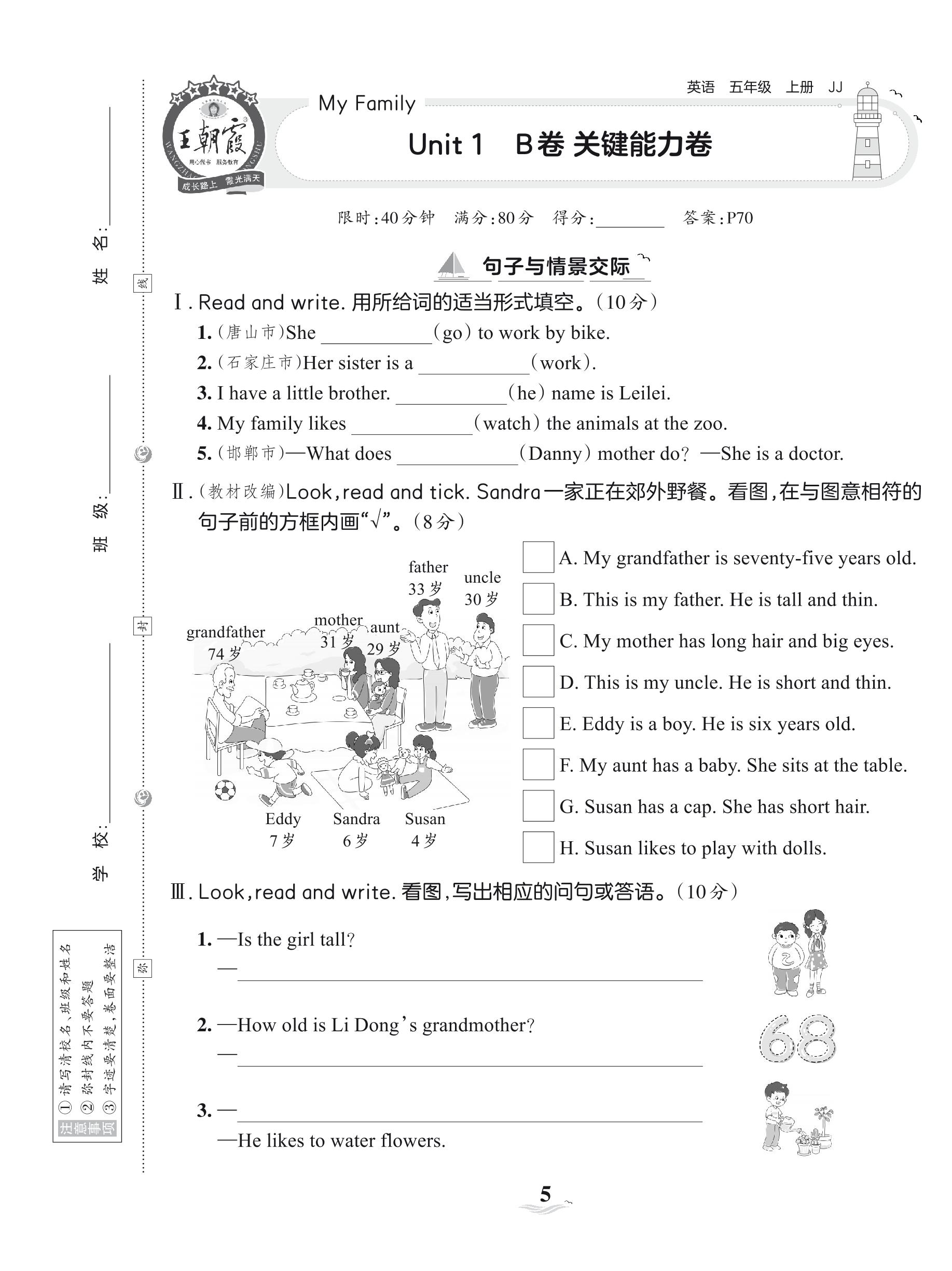 2023上册五年级英语冀教版 Unit 1 B卷 关键能力卷