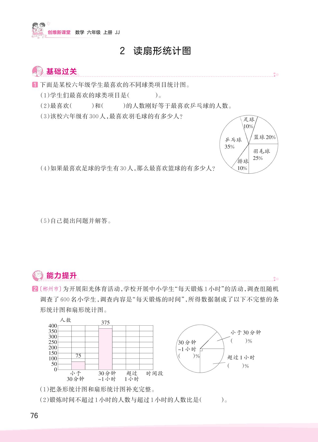 2023上册六年级数学冀教版 七 扇形统计图——2 读扇形统计图