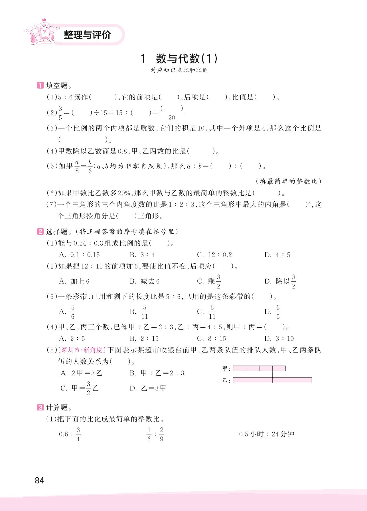 2023上册六年级数学冀教版 整理与评价——1 数与代数(1)