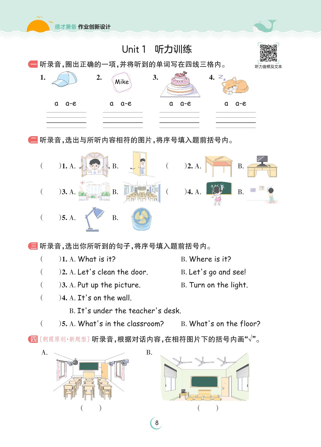2023上册四年级英语人教PEP版 Unit 1 听力训练