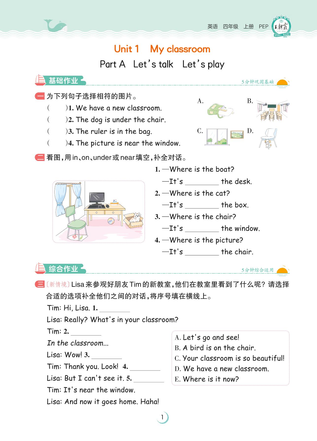 2023上册四年级英语人教PEP版 Unit 1—Part A Let’s talk Let’s play
