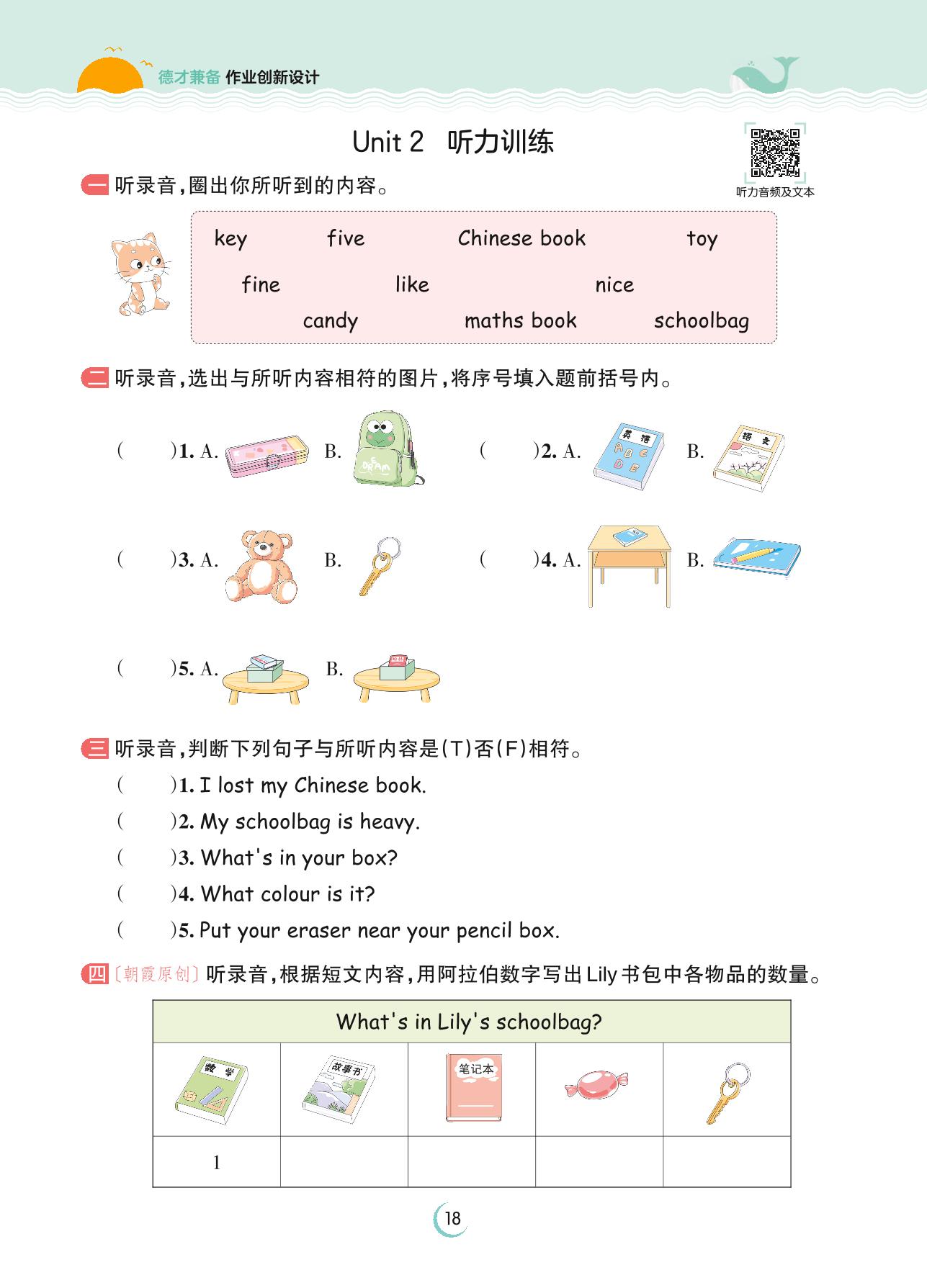 2023上册四年级英语人教PEP版 Unit 2 听力训练