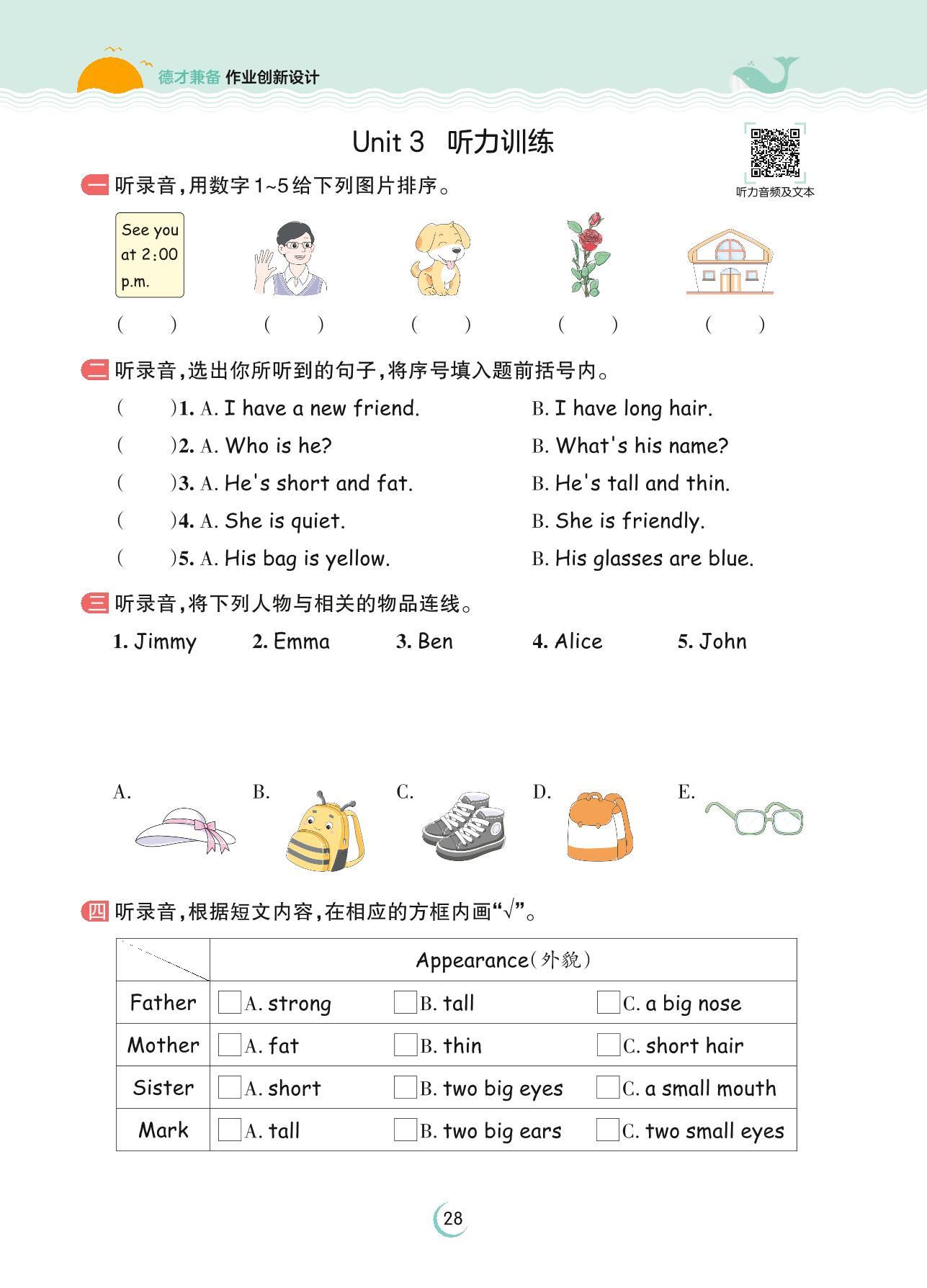 2023上册四年级英语人教PEP版 Unit 3 听力训练