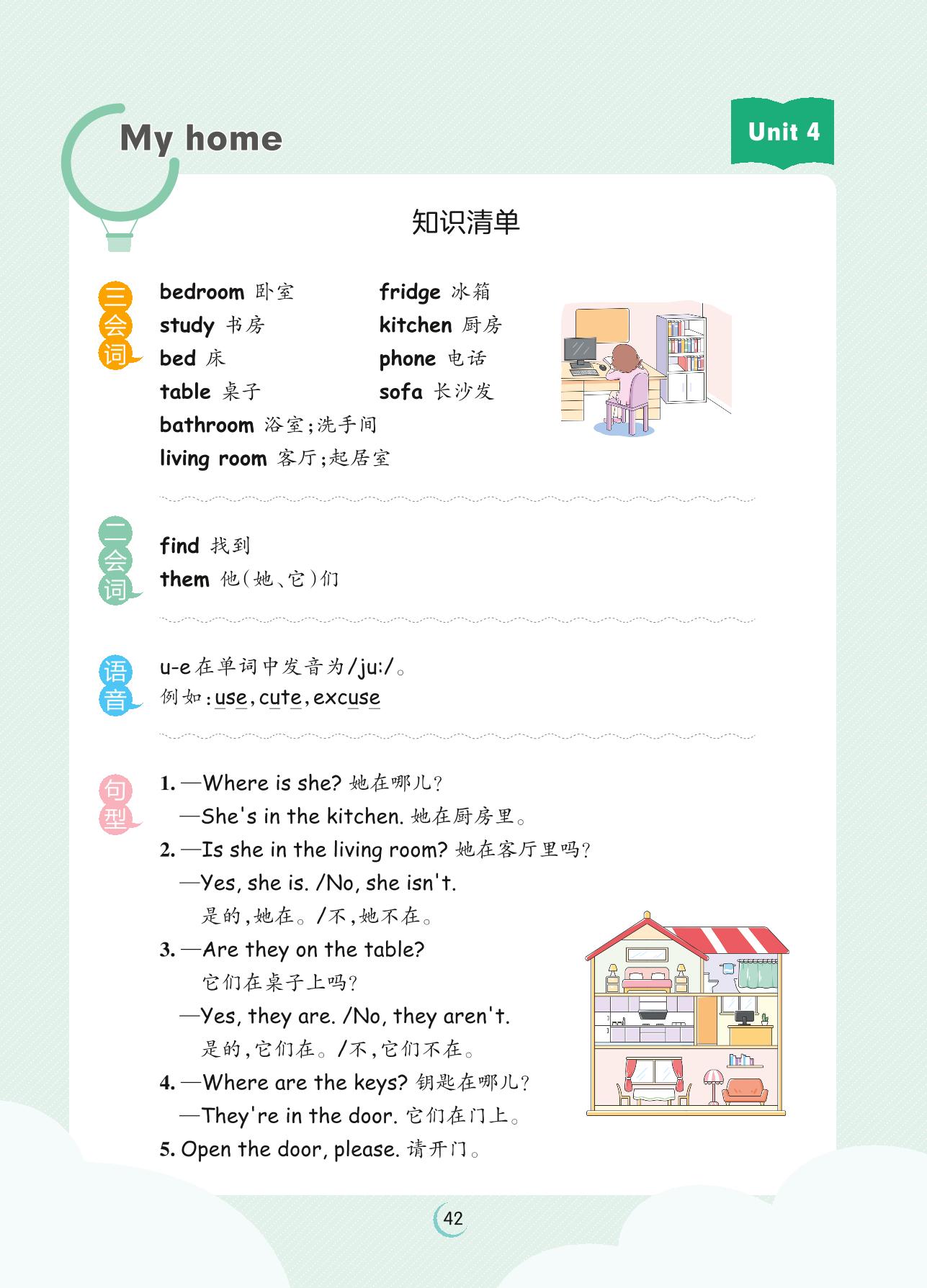 2023上册四年级英语人教PEP版 Unit 4 知识清单