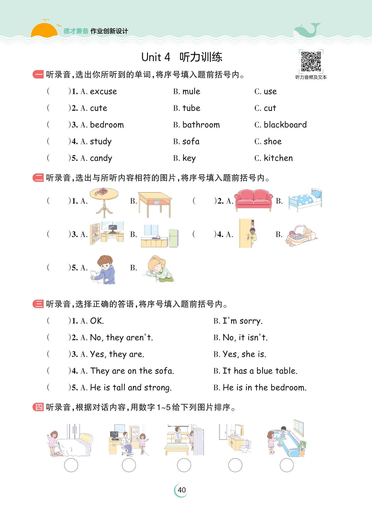 2023上册四年级英语人教PEP版 Unit 4 听力训练