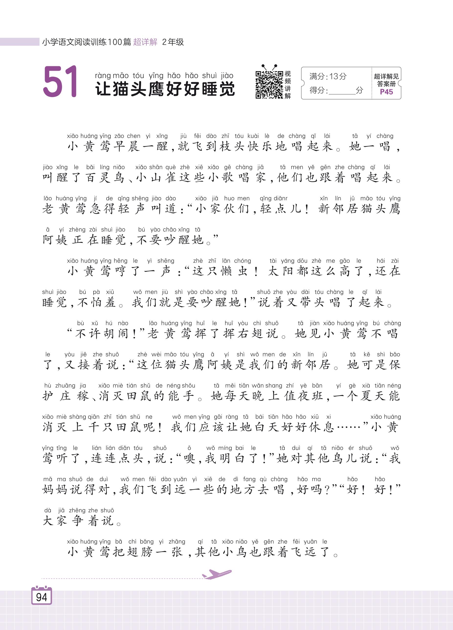 2024全一册二年级语文人教版 专题四 童话故事 51 让猫头鹰好好睡觉