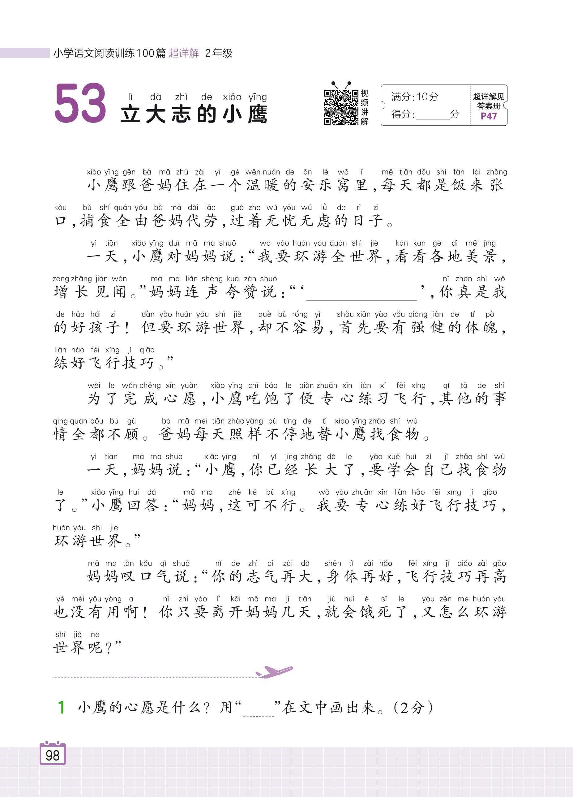 2024全一册二年级语文人教版 专题四 童话故事 53 立大志的小鹰