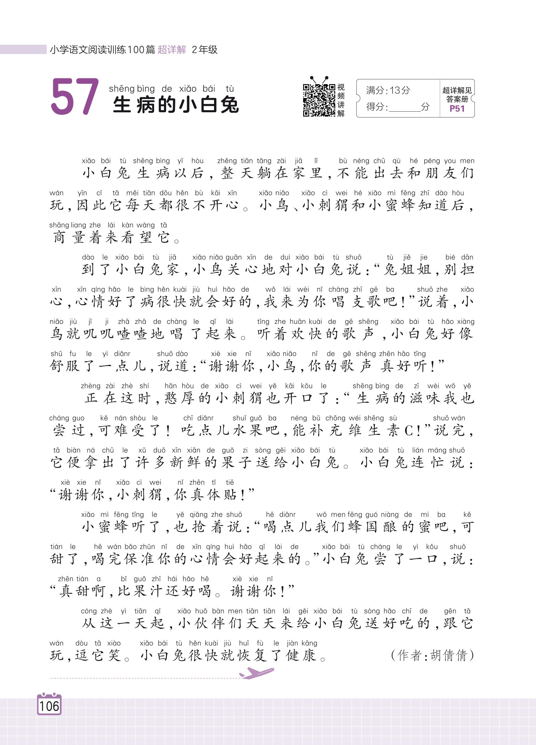 2024全一册二年级语文人教版 专题四 童话故事 57 生病的小白兔